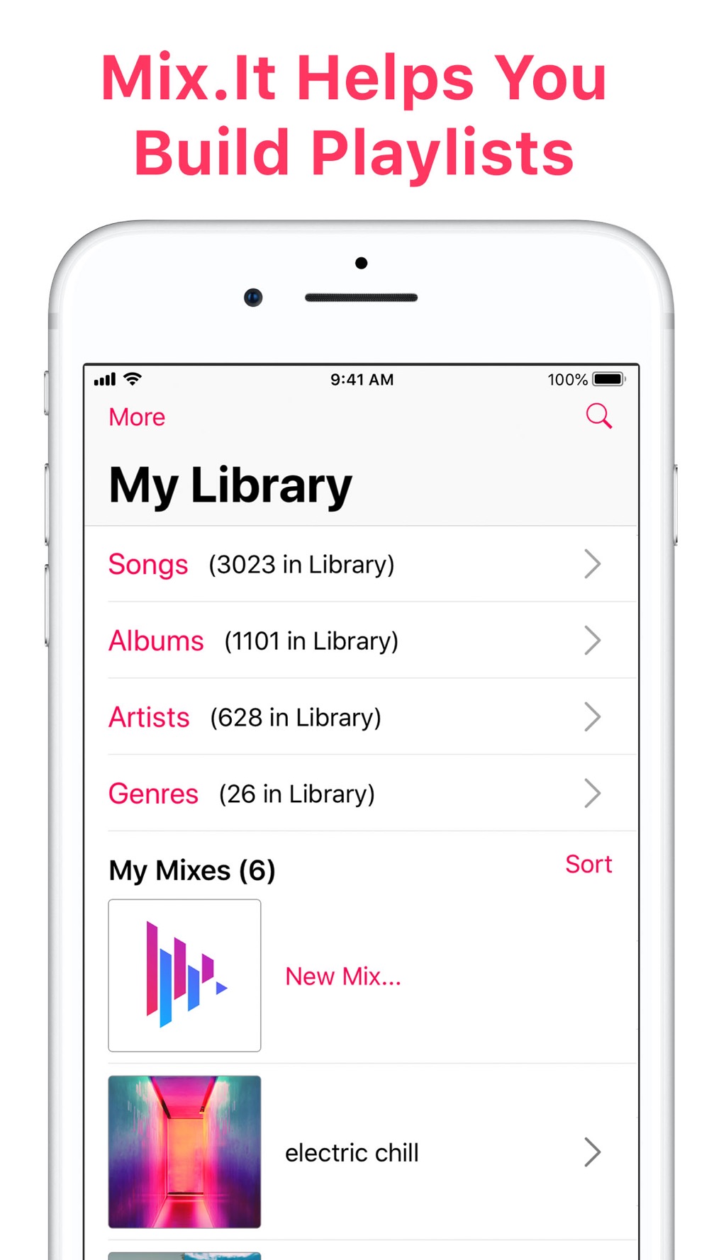 Mix.It uses machine learning and AI to help you build fantastic playlists in seconds. Need a Hip-Hop playlist for a work out? Open Mix.It. Need a Dance playlist for a party? Open Mix.It. Have a friend who doesn’t like your music? Open Mix.It!