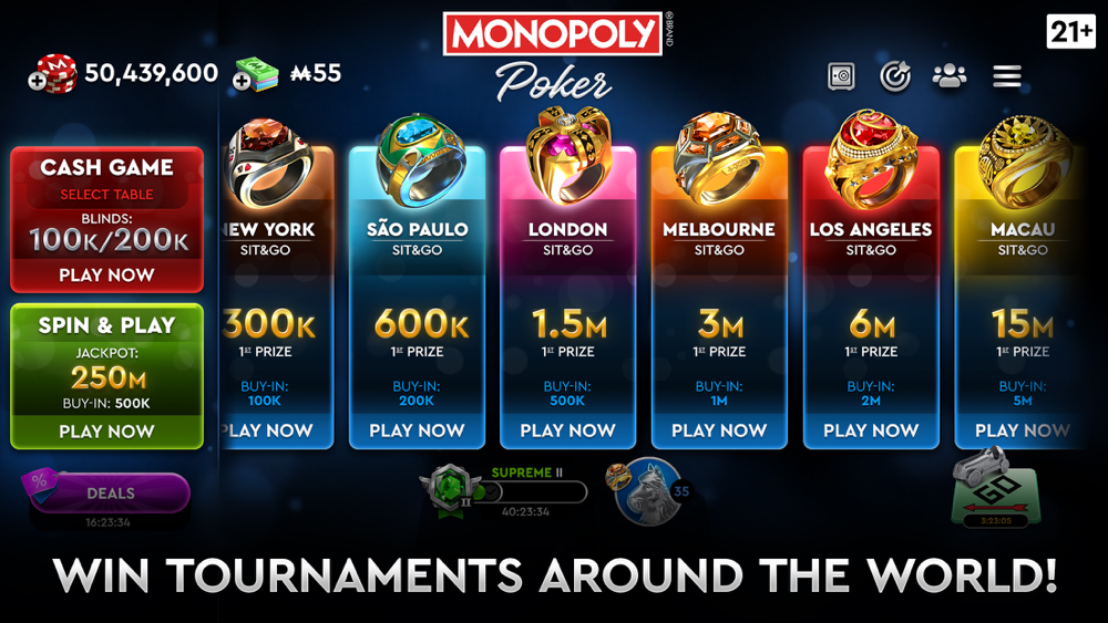 Welcome to the official MONOPOLY Poker game. Are you ready to conquer the empire of Texas Hold’em poker ?