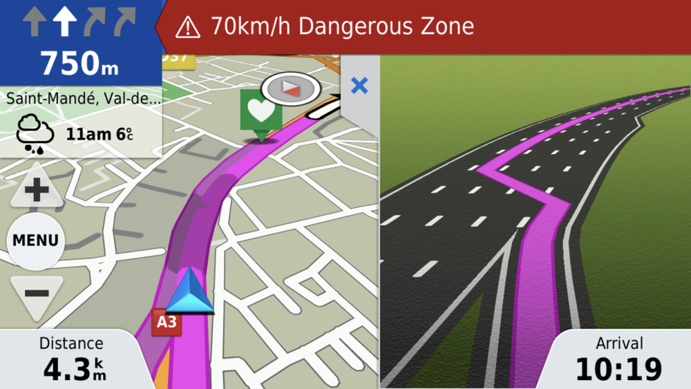 You’ll also be notified about speed limit, speed camera, or school nearby along the route.
