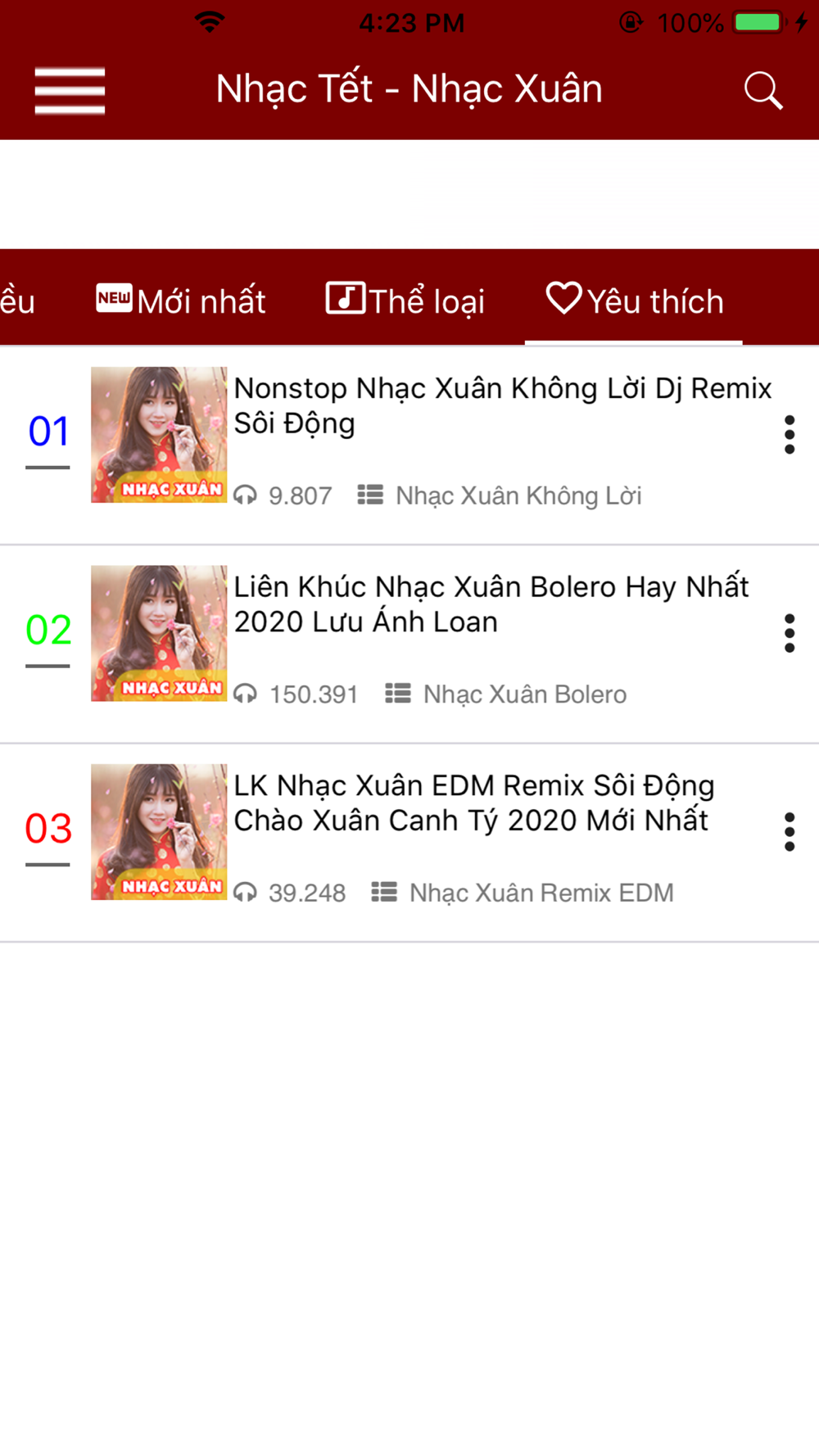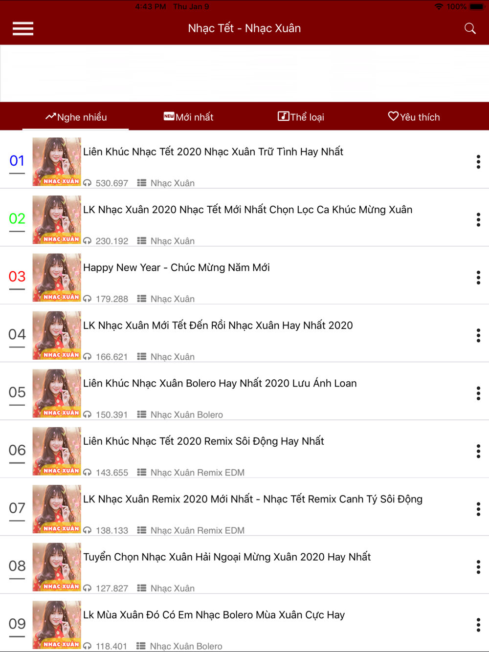 Ung dung gom nhieu danh muc nhac nhu Nhac Xuan moi nhat tuyen chon Nhac Tet Remix Nhac Xuan Bolero Nhac Song Mung Xuan Nhac Khong Loi xuan