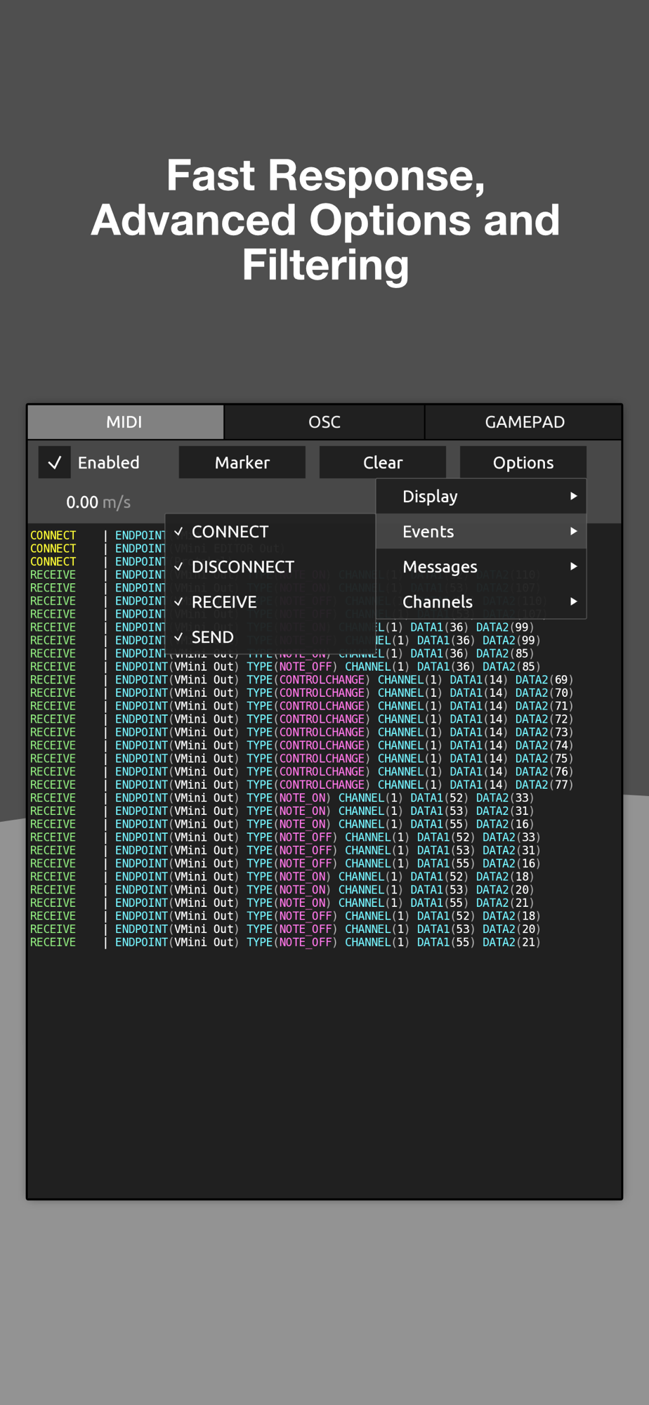 MIDI logging, OSC monitoring, and more...