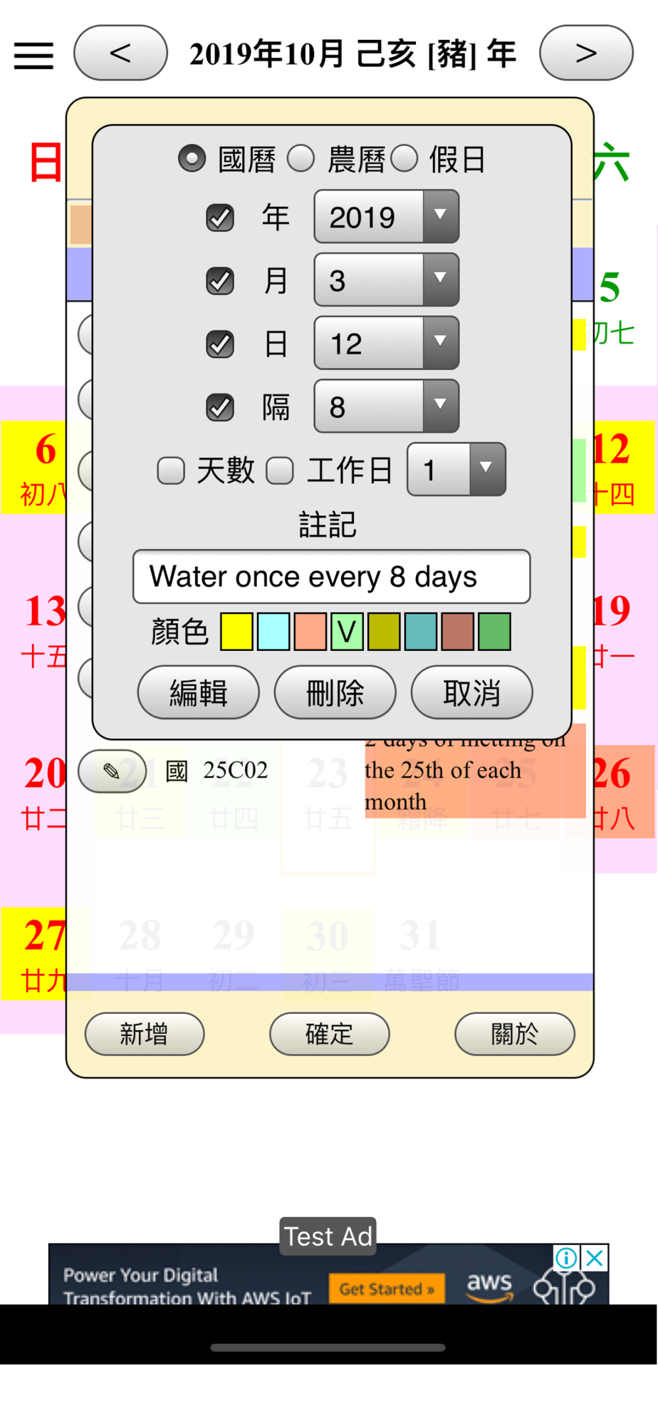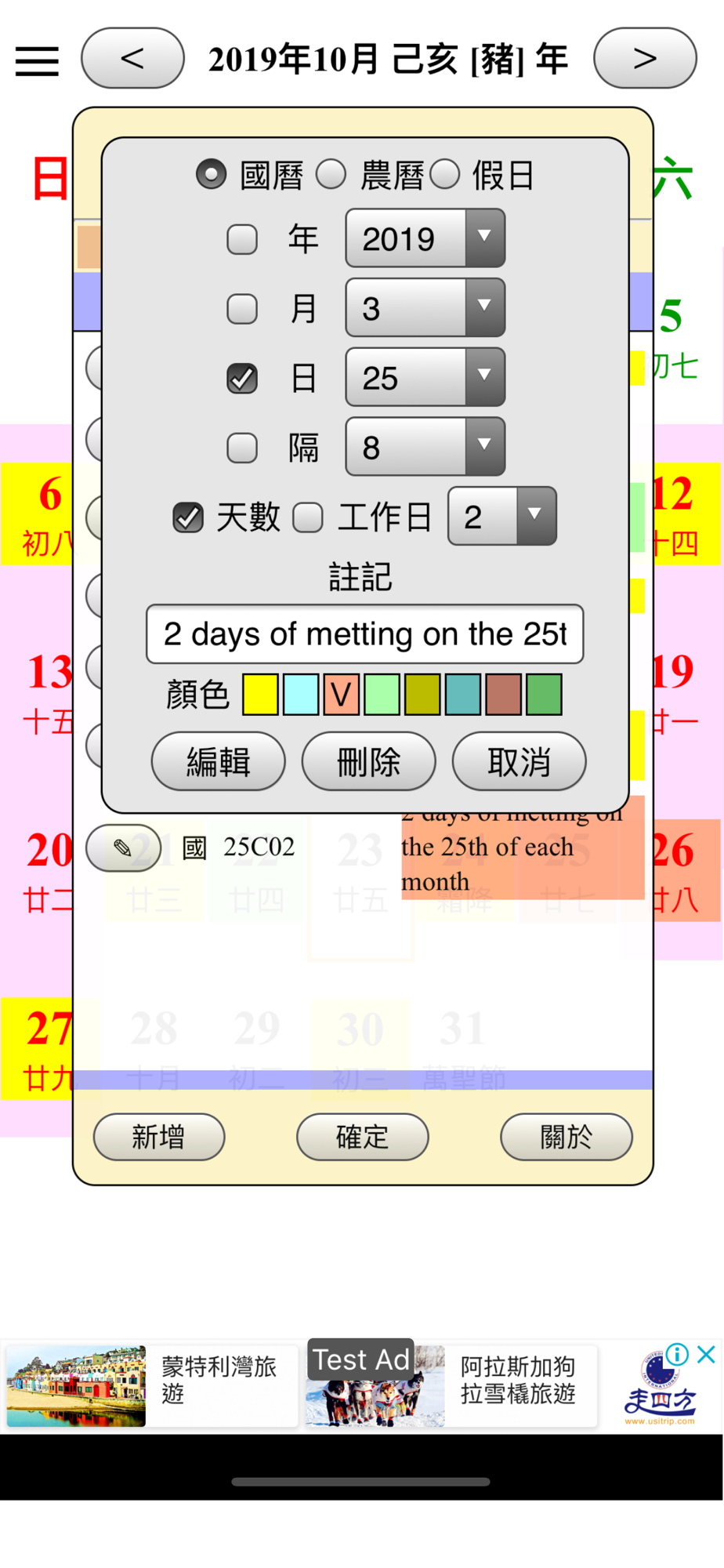 2.自訂國曆或農曆不同顏色的提醒功能