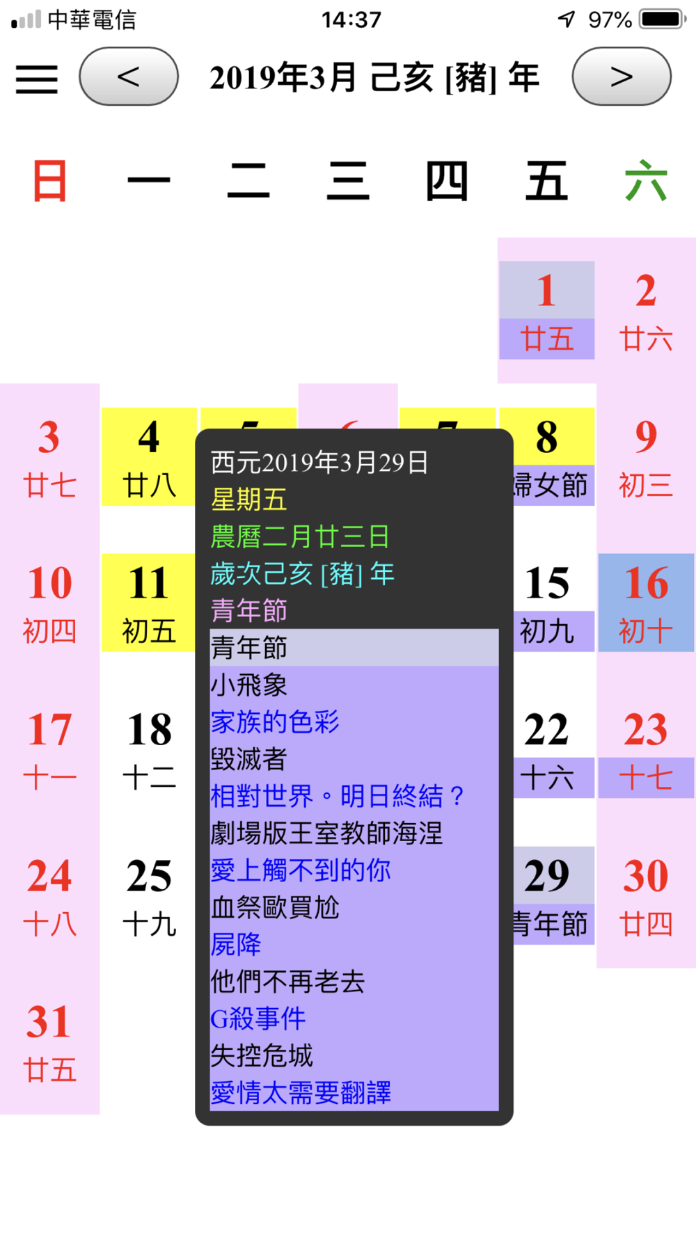 11.電影上映日期日曆