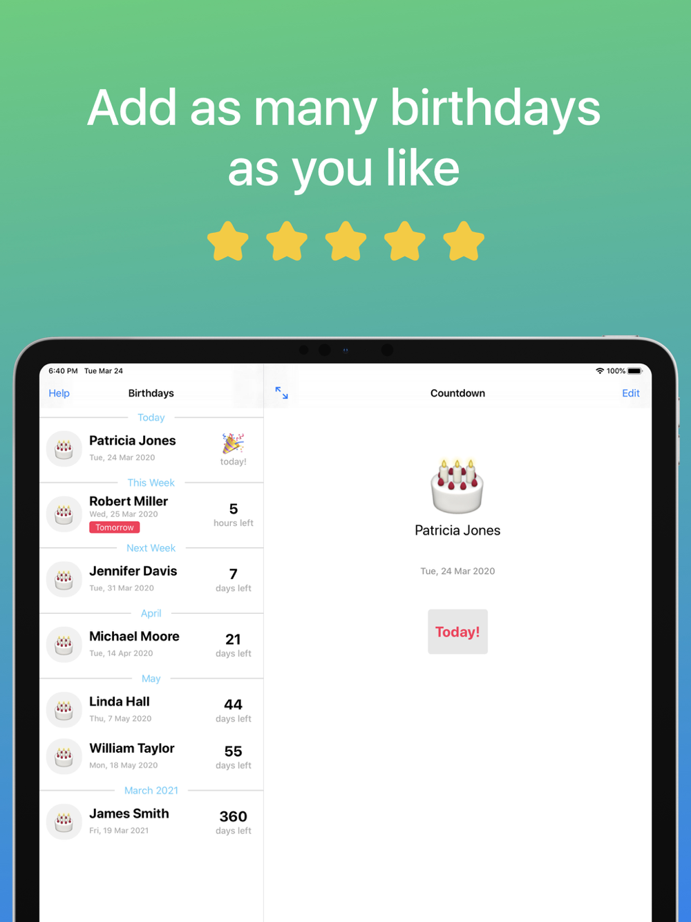 Birthday Countdown is a free, super easy to use countdown and reminder app for the all the important birthdays in your life. Never forget a birthday again!