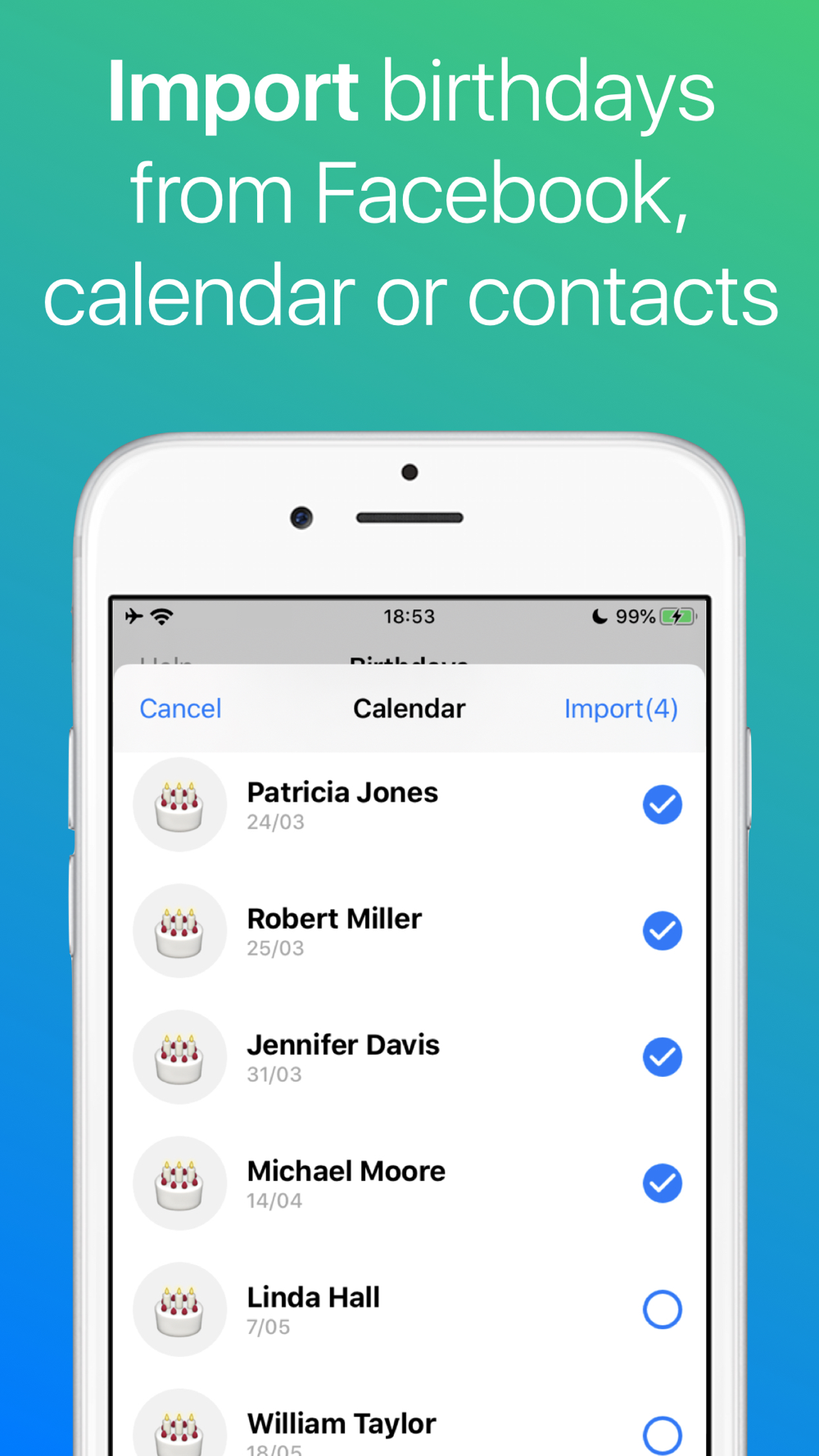 • Check your birthdays on the Lock Screen or Home Screen with our widget (Premium feature)