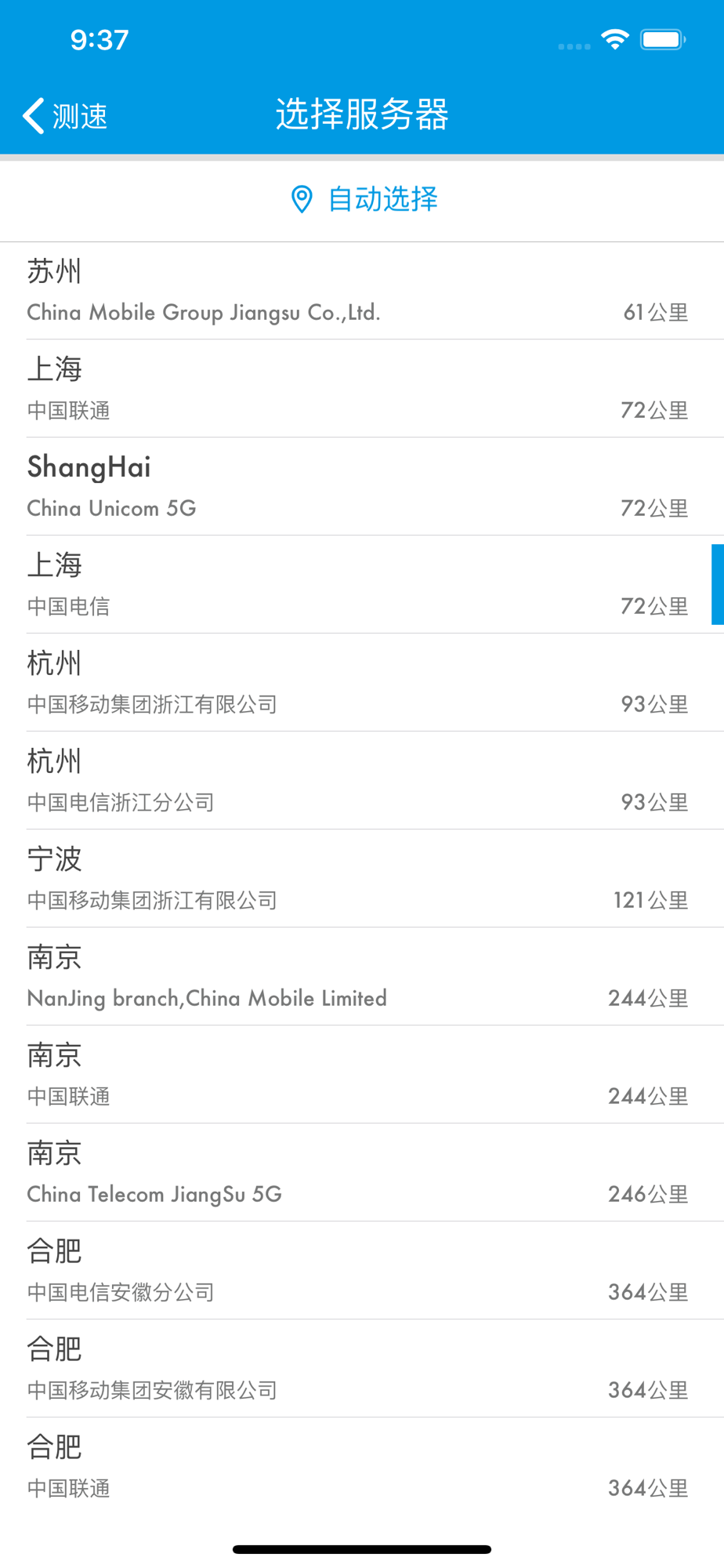 - 测速点智能选择,也可以自己手动选择测试点进行测试。