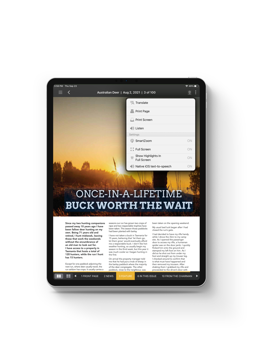 The Australian Deer Magazine is a digital edition of the print publication available on your computer, tablet or smartphone. With our app you can download full issues for offline reading; read publications and stories just as they appear in print; read full stories in an attention-grabbing, horizontal news stream in text view mode; share articles or images you enjoy with family and friends; and more.