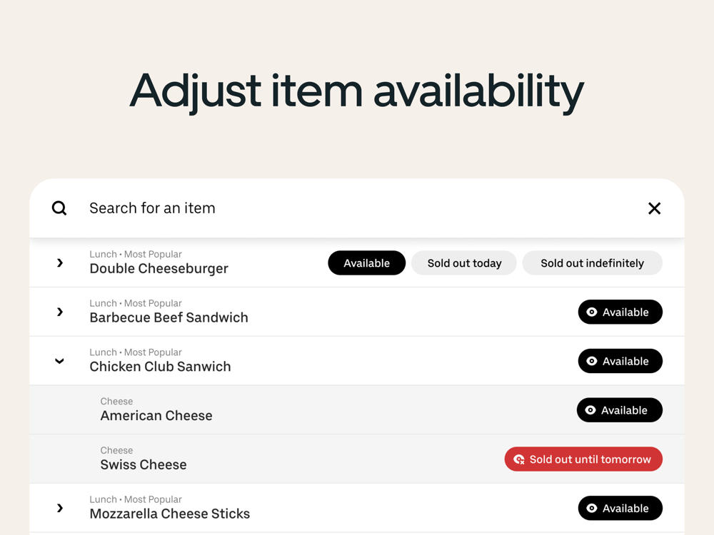 • Control in the palm of your hand. Can’t be at your store all the time? No problem! The app lets you cancel orders, mark items out of stock, and turn your delivery capabilities off and on from anywhere there’s an internet connection.