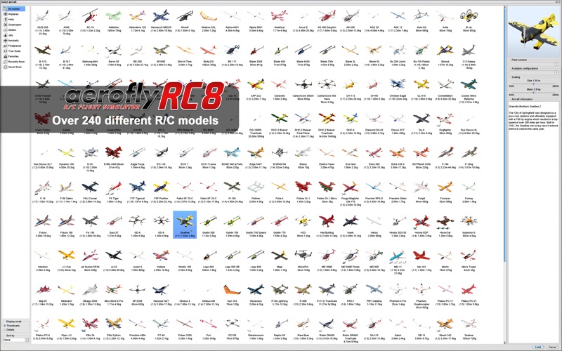• Different model types: Quadrocopters, electric and gas powered airplanes, helicopters, gliders, jets, and scale models