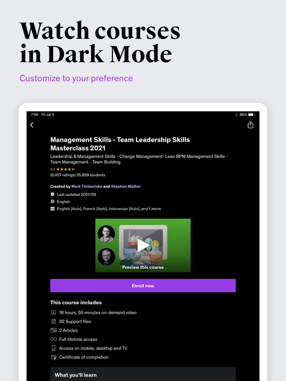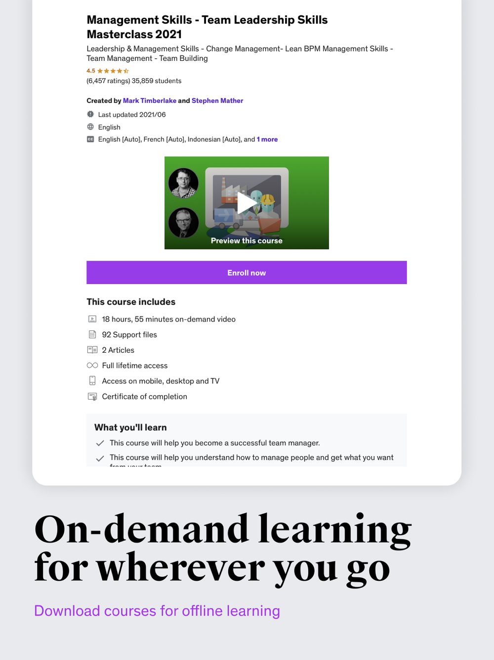 Udemy Government features 11,000+ top-rated content for you to learn new skills anytime, anywhere. From software development, IT, design, leadership to communication skills, the Udemy Government mobile app puts the freshest, most in-demand content in your hands. Upskill your talents and learn from highly respected real-world practitioners, thought leaders, and experts from around the world.