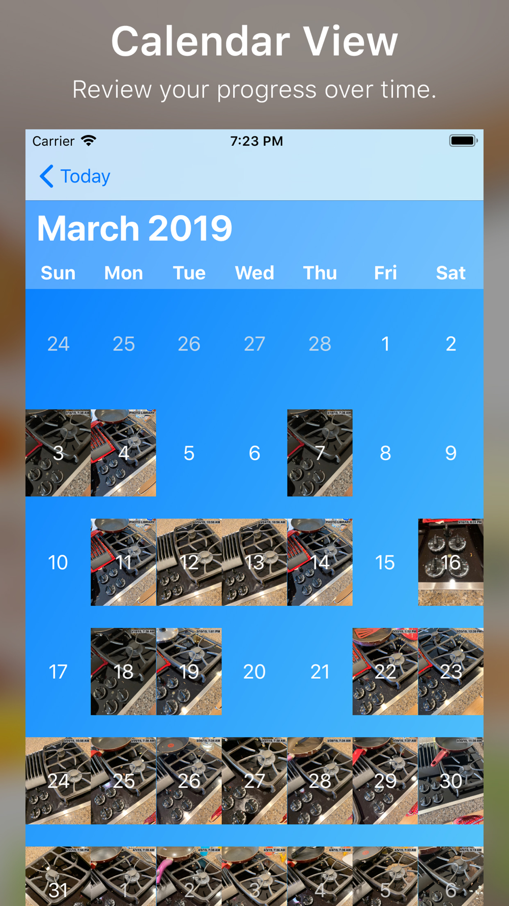 You can see all your photos for a task in a convenient calendar view. This is great to see your progress over time.