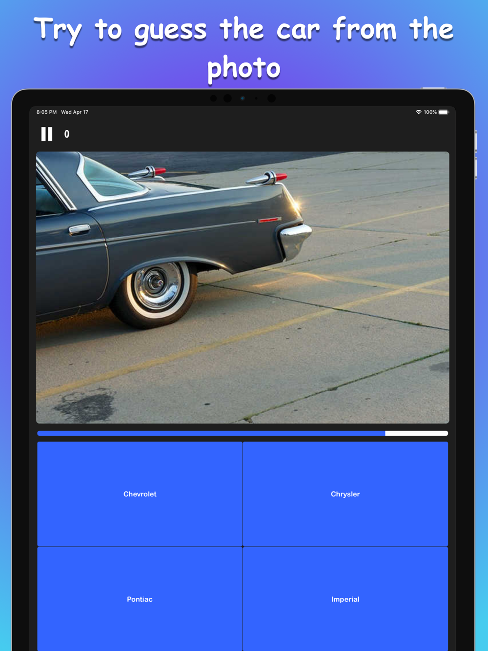 Try to guess as many cars as possible from their photos. The game has 2 game modes. Take first place in the leaderboard by guessing the most cars.