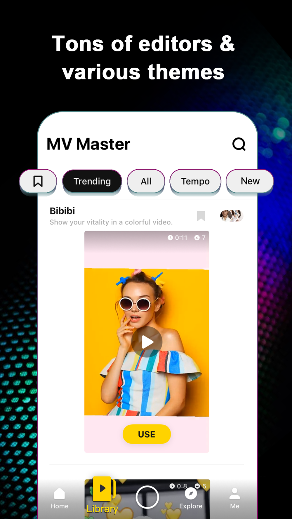 There will be a super fun community on the Explore page full of interesting and funny people ALL OVER THE WORLD! You can see their created videos, follow them, give likes and comments, and chat with them and make friends.