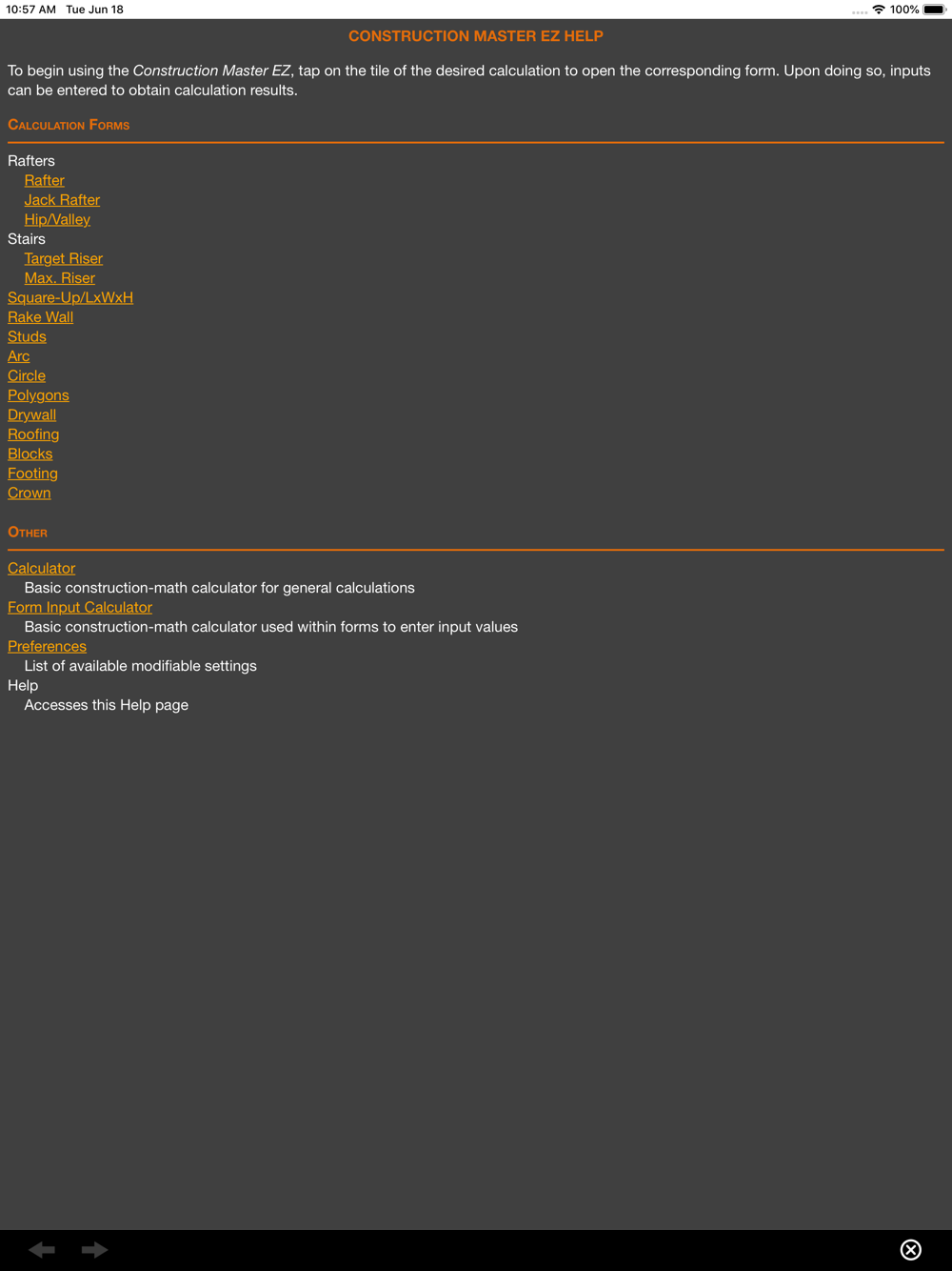 • All the functionality and solutions of the handheld Construction Master calculators and optimized for the iOS device user