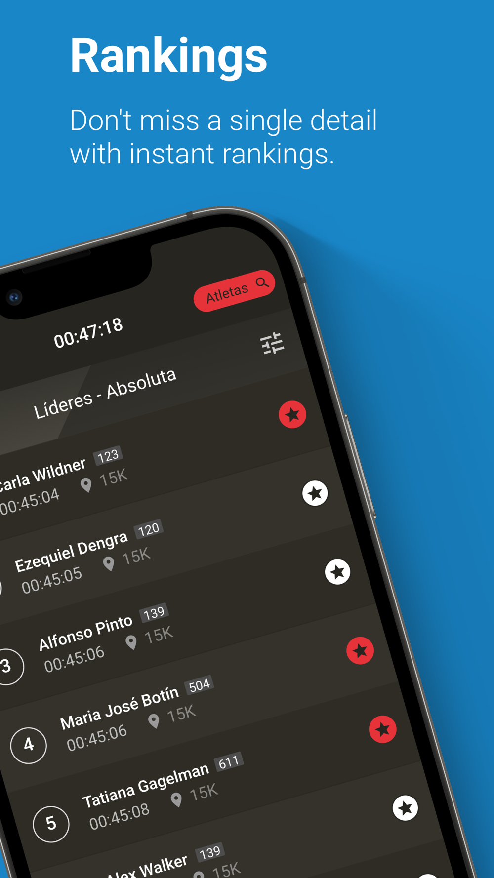 Además, podrás ver de forma rápida cualquier clasificación al instante: por categorías, los primeros corredores por tramo y el último punto alcanzado de los participantes a los que sigas.