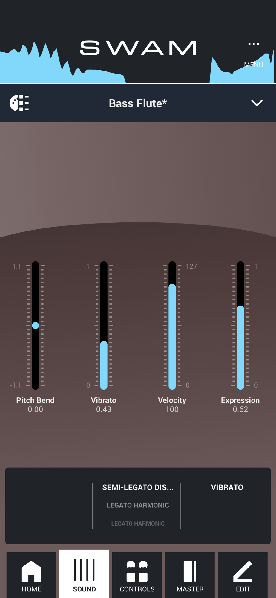 SWAM Bass Flute for iOS can be used as a standalone instrument for playing in real-time, or as a plug-in for mobile music production. Play with your favorite external controller or directly from your iOS device through our intuitive interface, friendly for blind and visually impaired users.