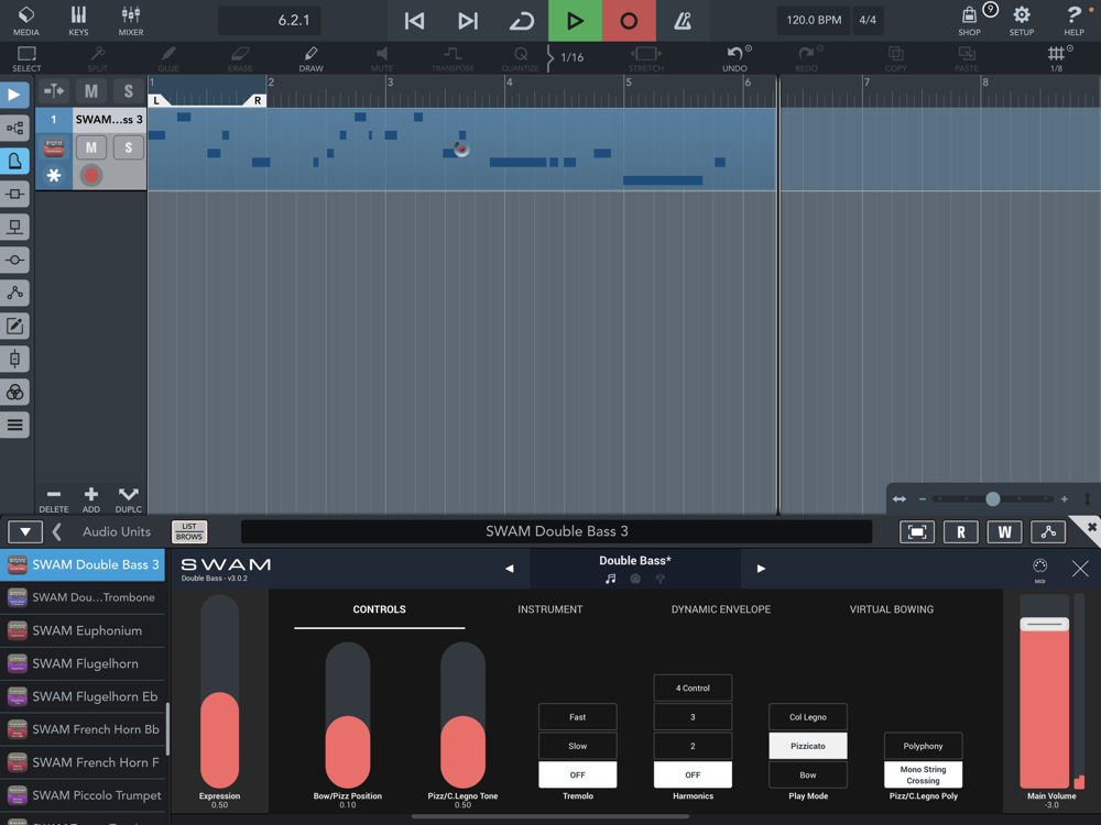 SWAM Double Bass for iOS can be used as a standalone instrument for playing in real-time, or as a plug-in for mobile music production. Play with your favorite external controller or directly from your iOS device through our intuitive interface, friendly for blind and visual impaired users.