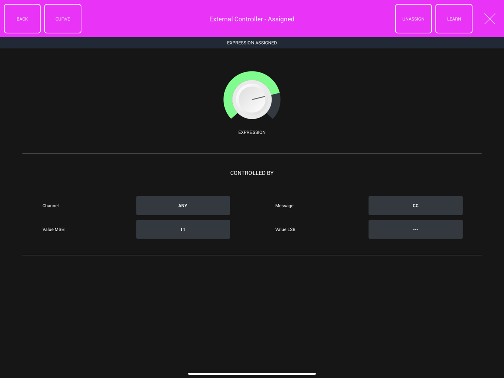 IMPORTANT: If you choose to play using an external controller, please note that a controller with the ability to continuously control the expression (like an expression pedal, breath controller, MPE device, wind controller, …) is REQUIRED. The same way real players need a bow to express themself on their instrument, SWAM Viola needs something to control its expressivity. SWAM instruments do not work with just note-on velocity.