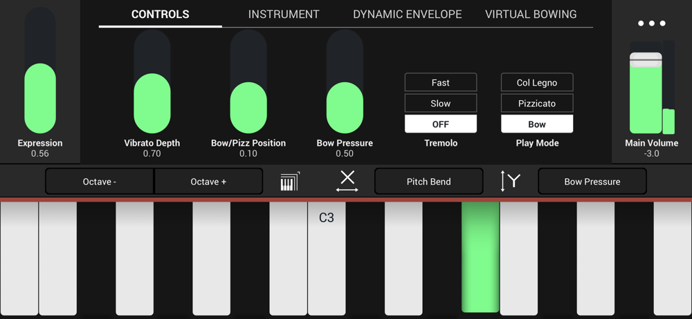 Control the instrument’s expressivity in real-time directly through the touch control interface on your iPhone or iPad including the exclusive virtual bowing touch surface!