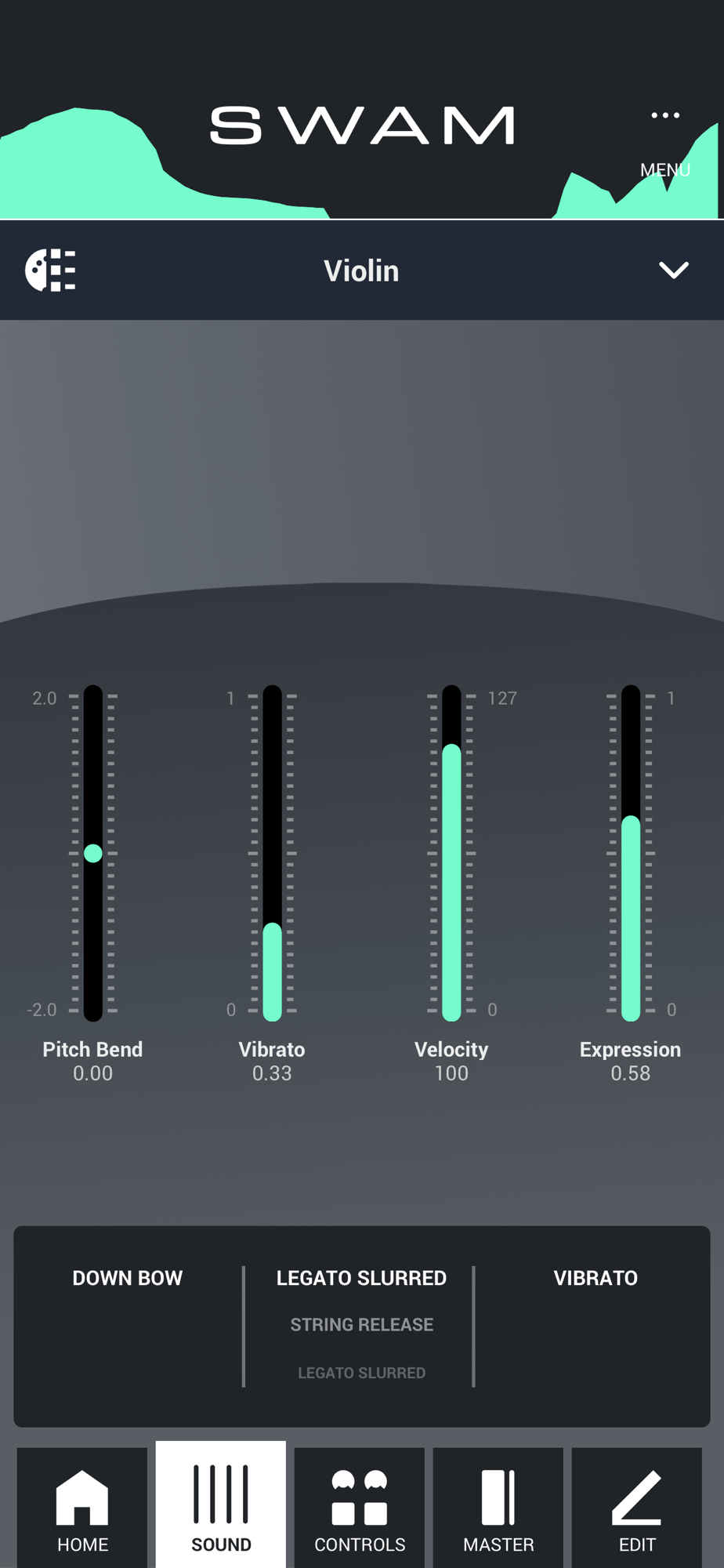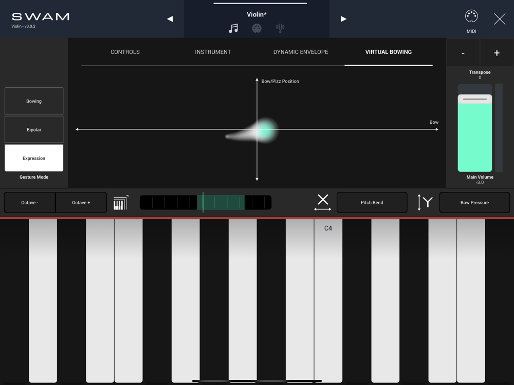 SWAM Violin for iOS can be used as a standalone instrument for playing in real-time, or as a plug-in for mobile music production. Play with your favorite external controller or directly from your iOS device through our intuitive interface, friendly for blind and visually impaired users.