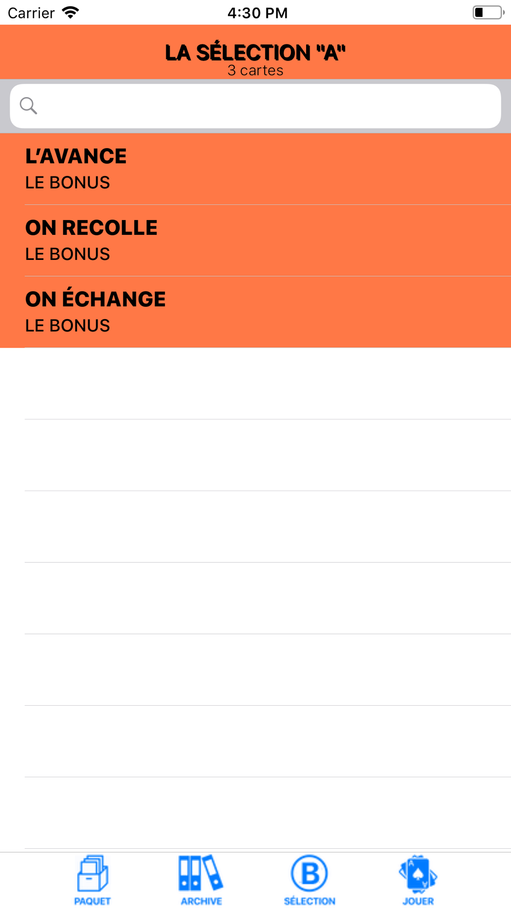 *Jouer directement avec 30 cartes