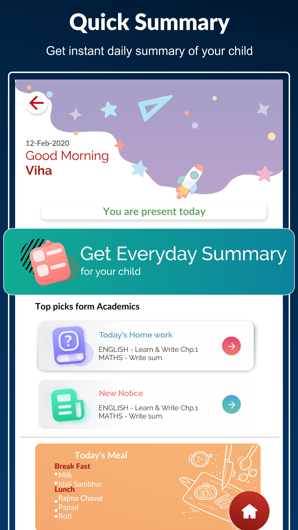 This Application is useful for Parent to get daily update about their kids regarding their Attendance, Homework, Notice, School Events etc.