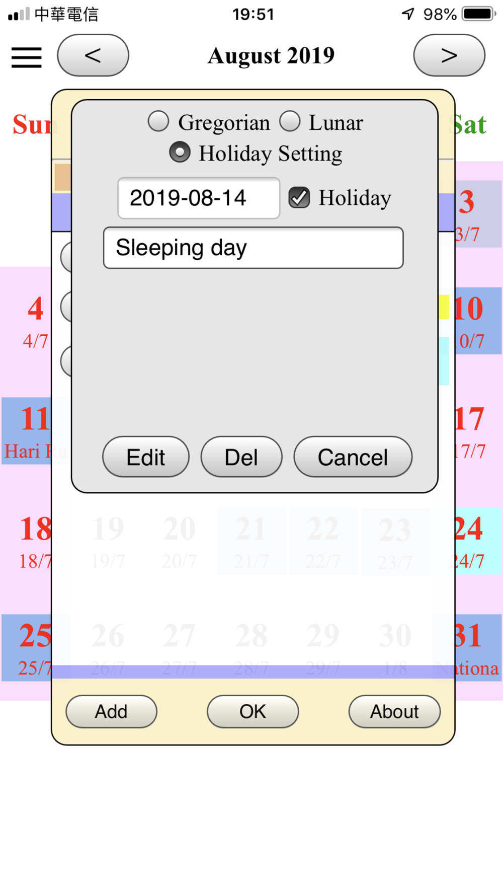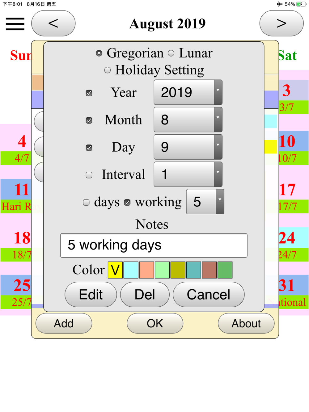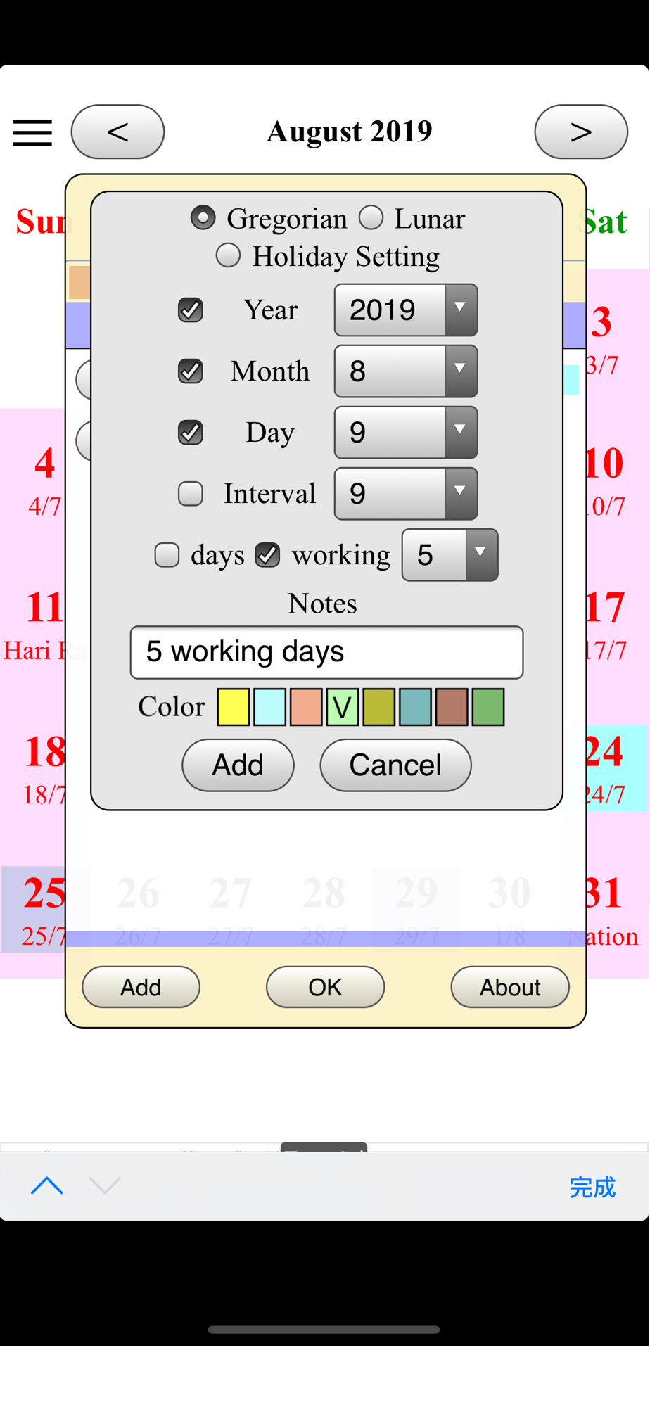 2.Customize reminders for different colors of the Gregorian or Lunar calendar