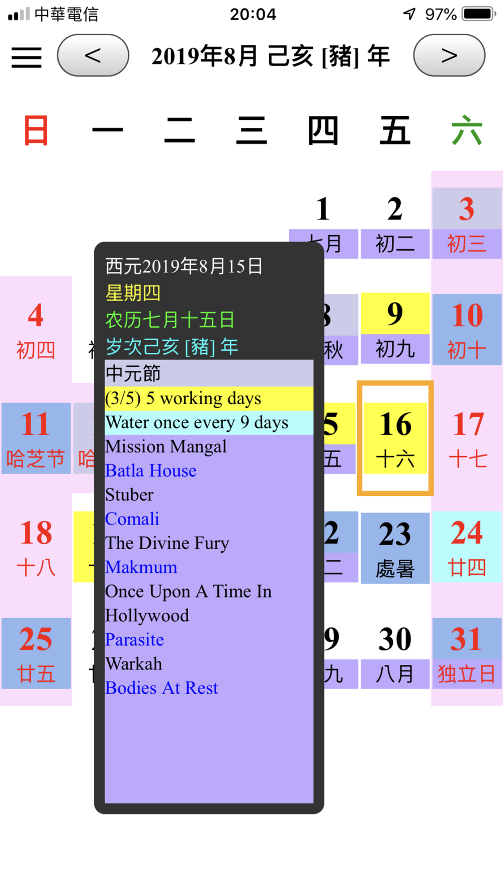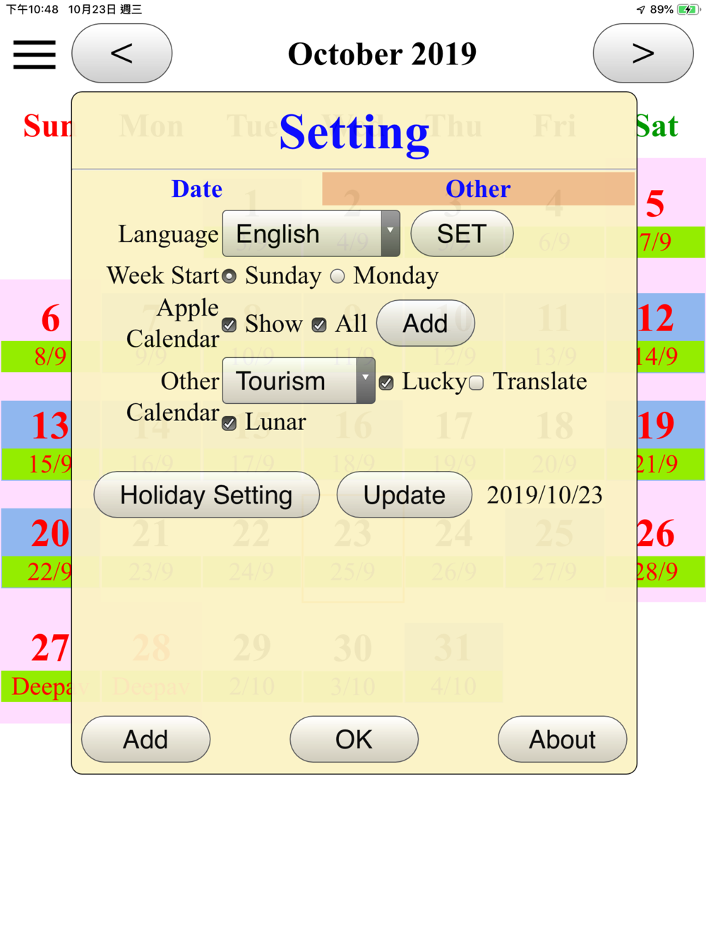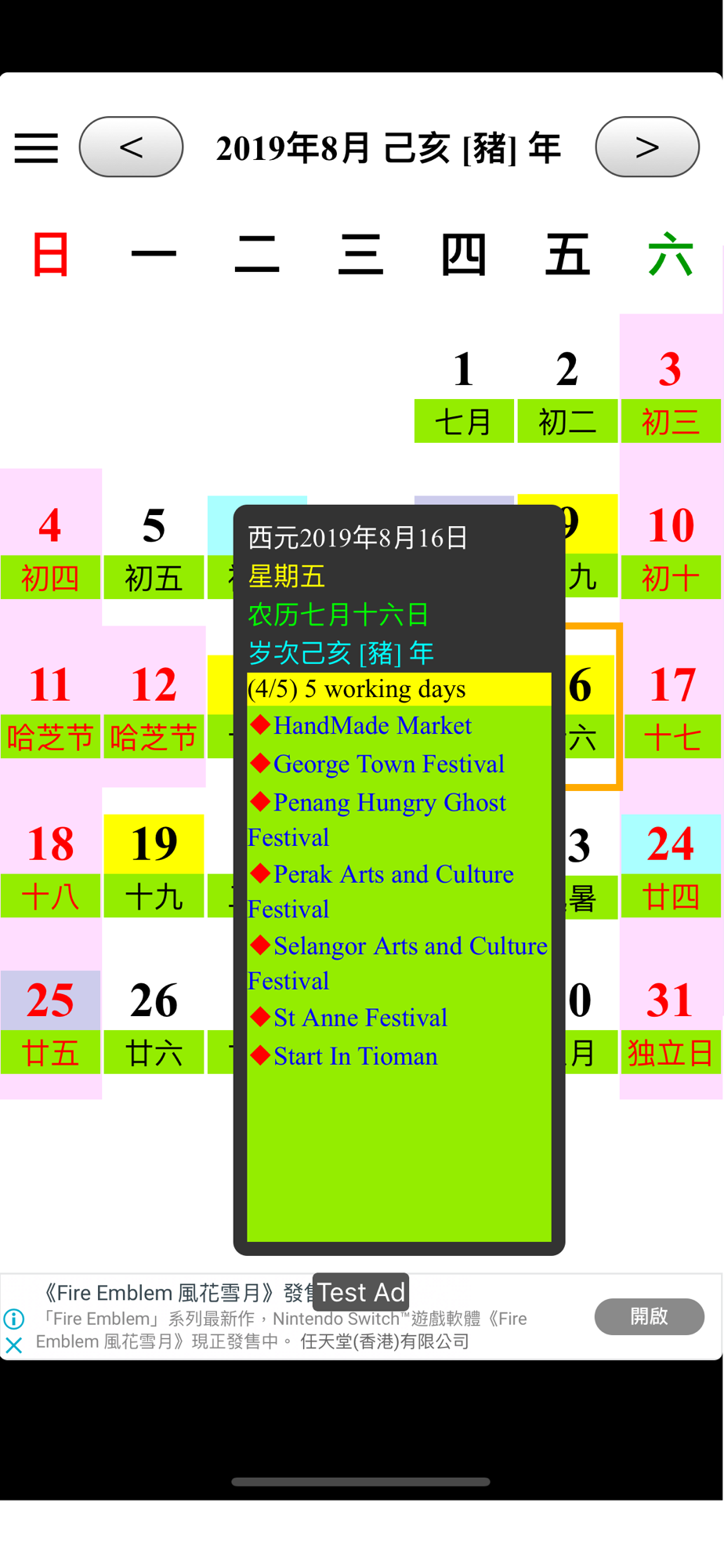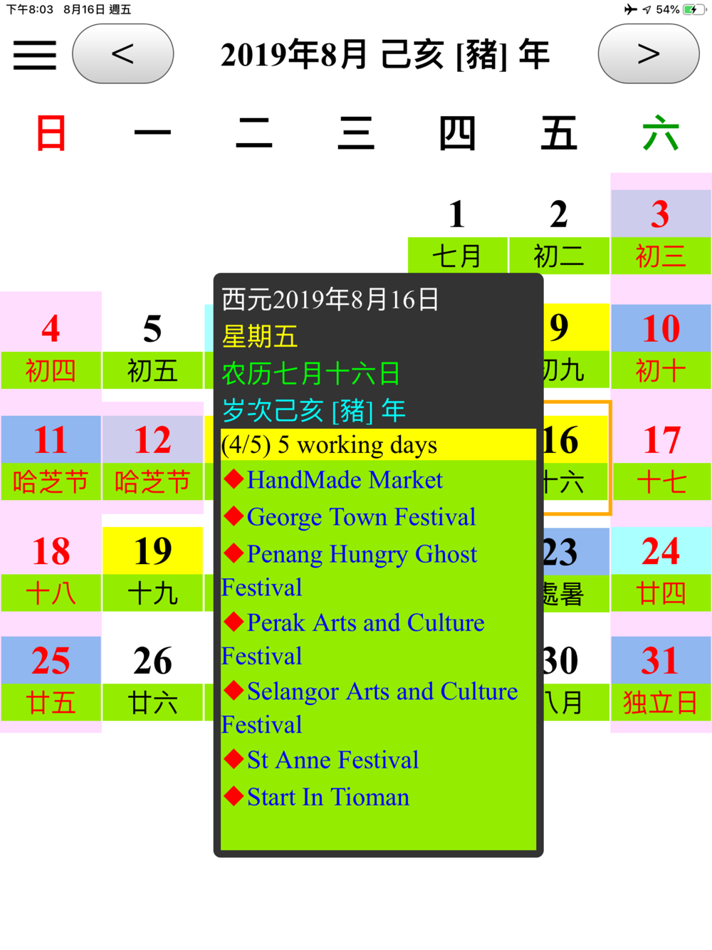 2.Customize reminders for different colors of the Gregorian or Lunar calendar