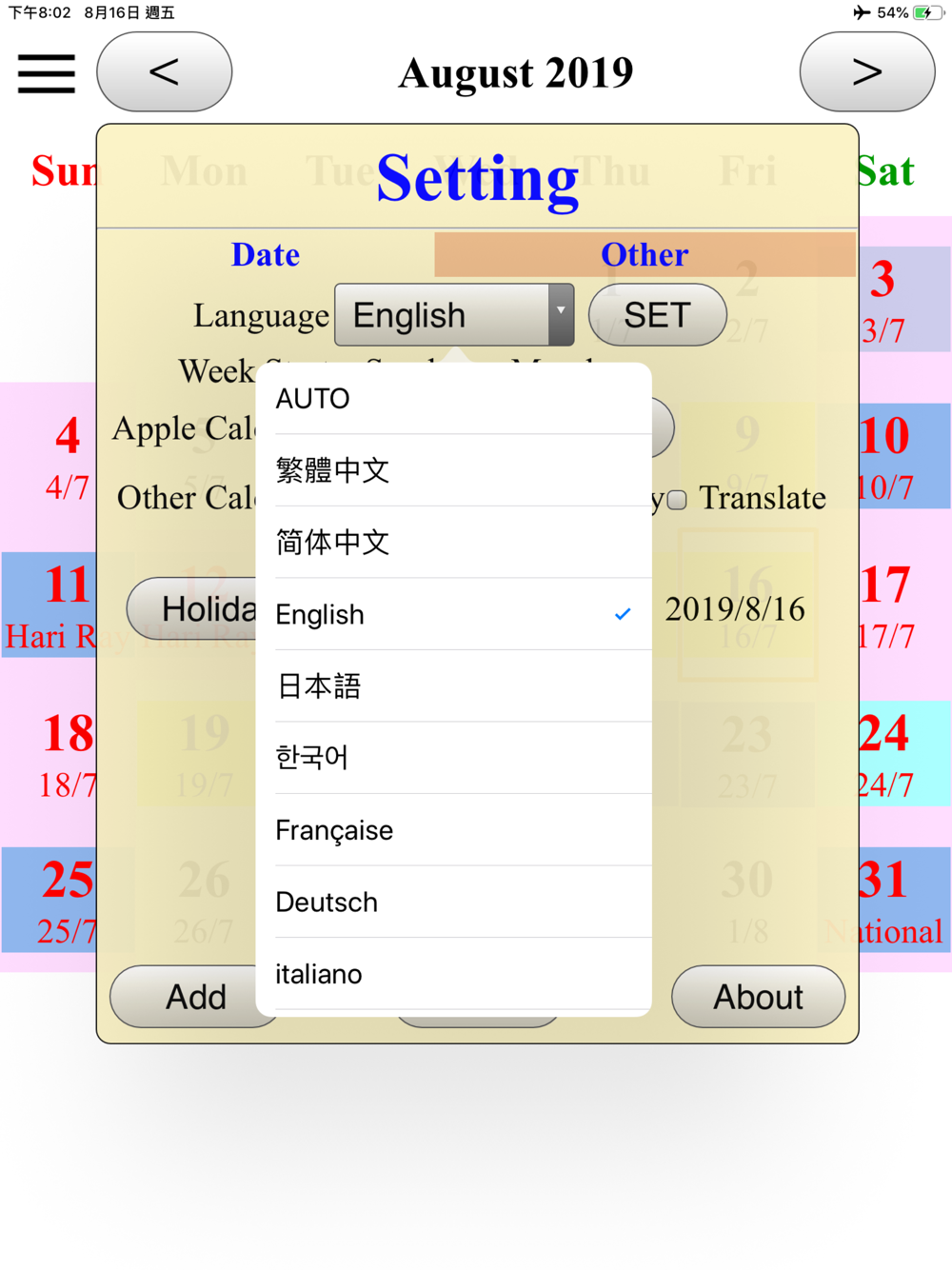 This is a simple and useful calendar and supports many languages. It updates the date of work and vacation every year. You can customize various reminders to facilitate time planning for vacations and travel.