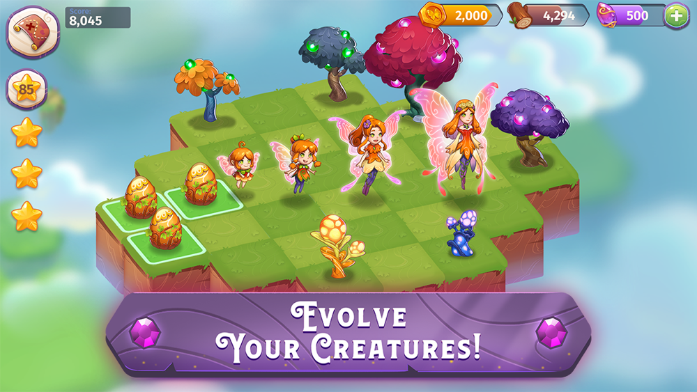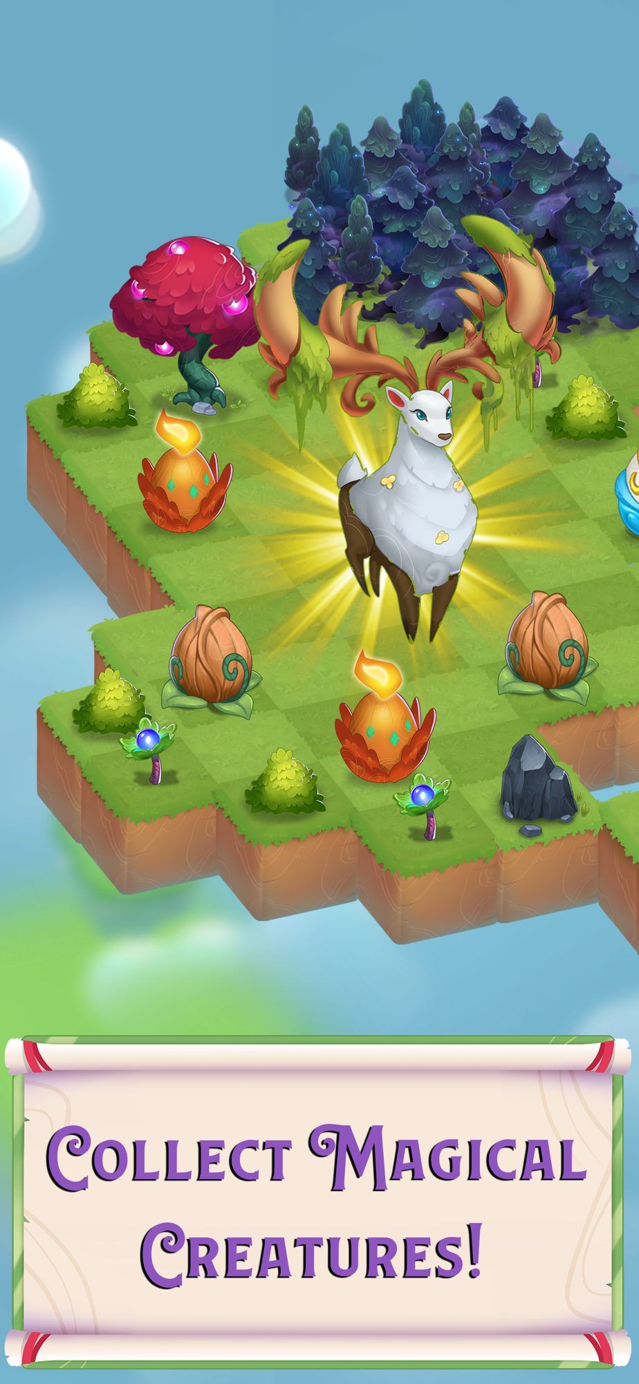 Merge eggs to hatch magical creatures, then evolve them to uncover more powerful ones! Encounter and solve challenging puzzle levels: match the items to win, then bring rewards back to your Garden to collect and grow.