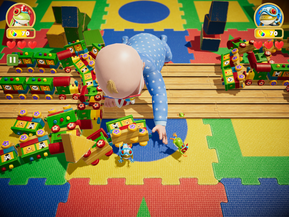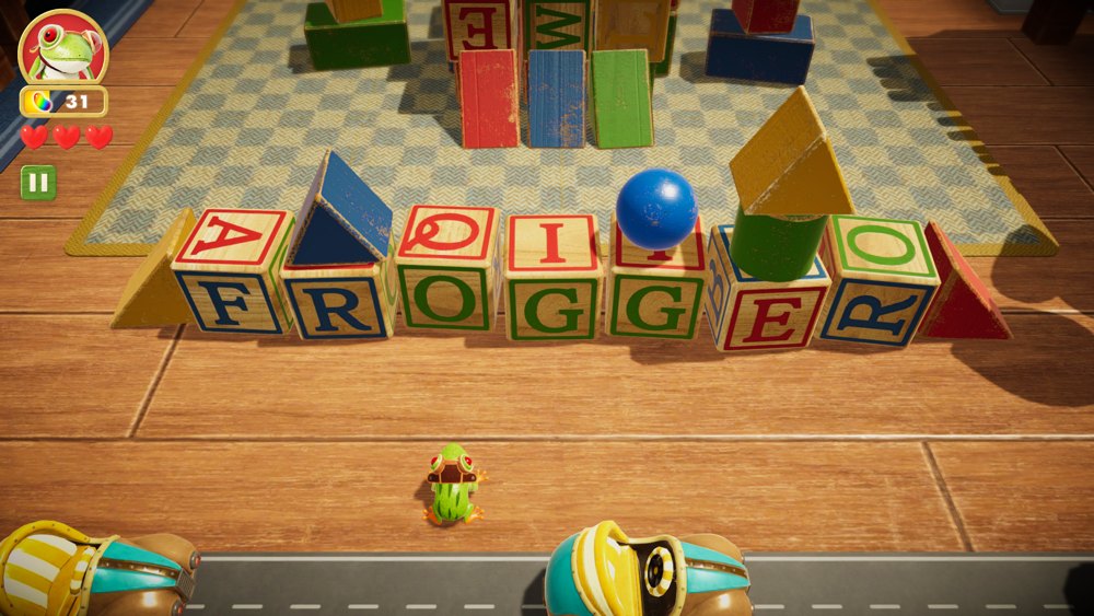 The houses may be filled with danger, but Frogger is the only one who can rescue the froglets.