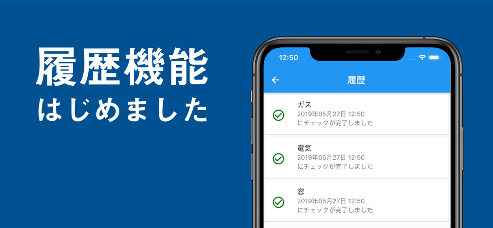 外出先で不安になったら履歴機能を見ればチェック項目とチェックした時間が記録されておりますので安心してください。
