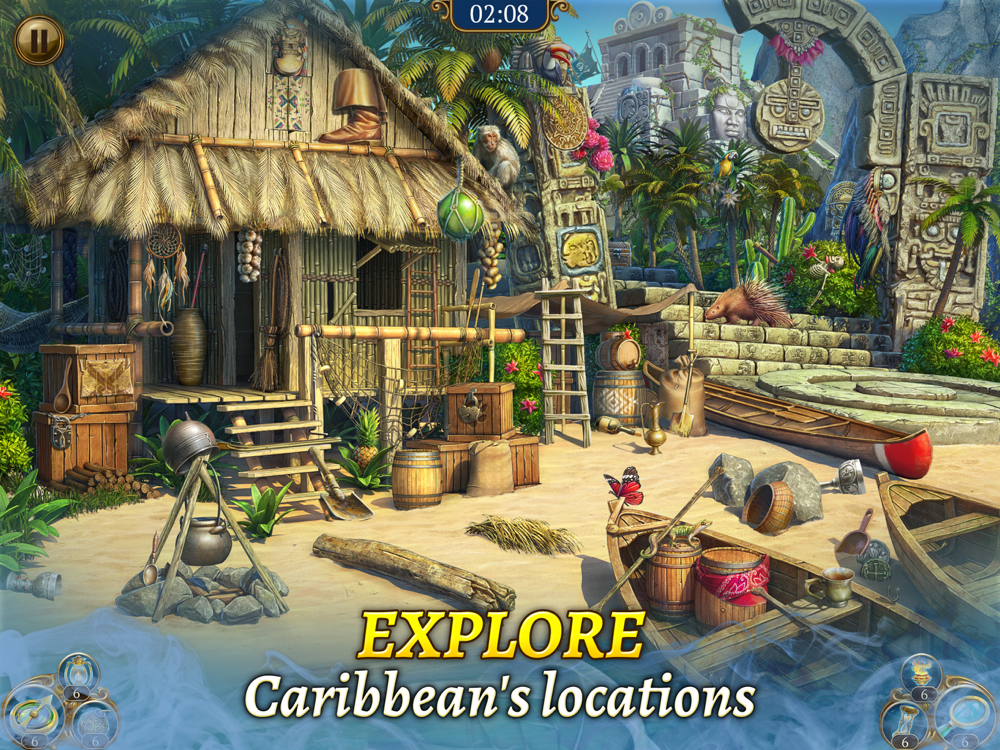 FIND HIDDEN OBJECTS OR MATCH GEMS TO SOLVE THE MYSTERY OF THE CARIBBEAN!