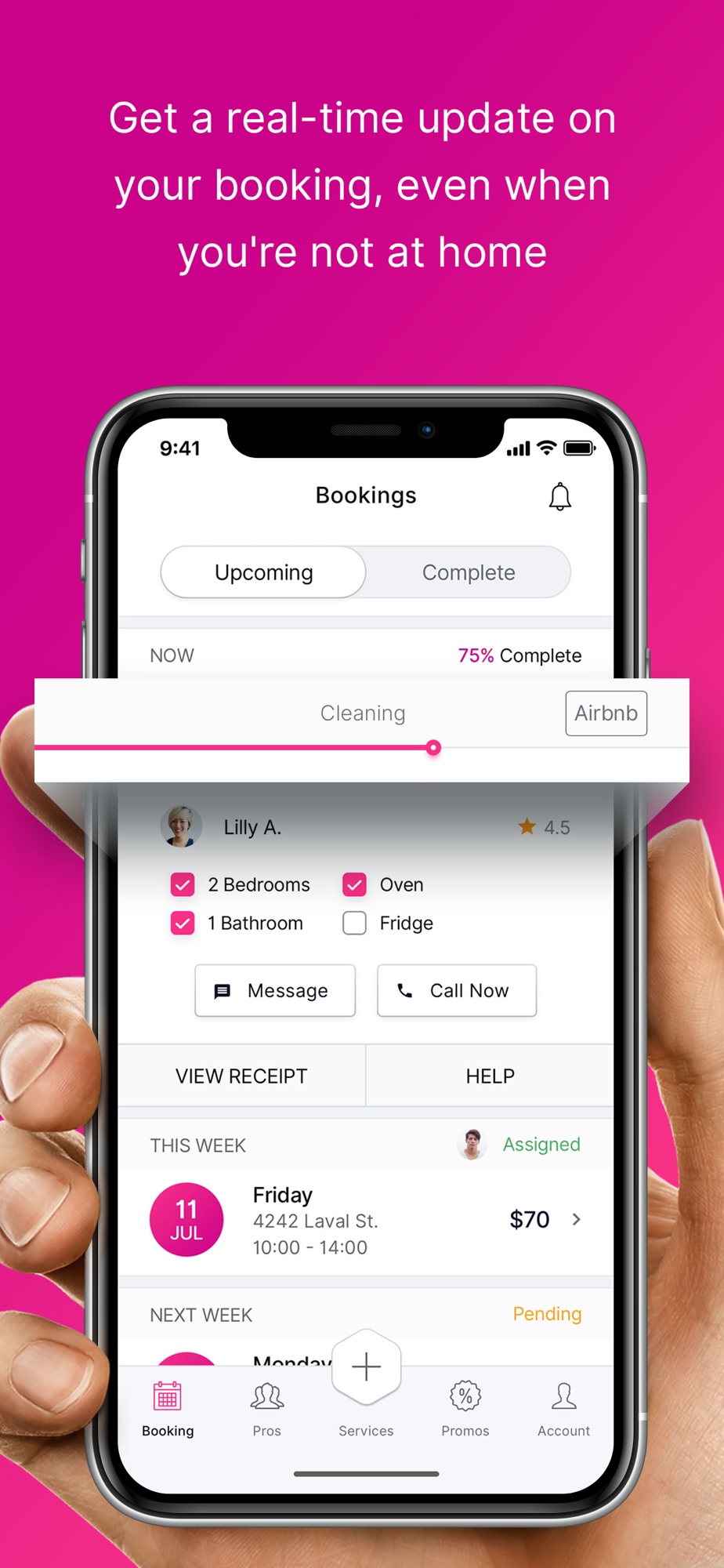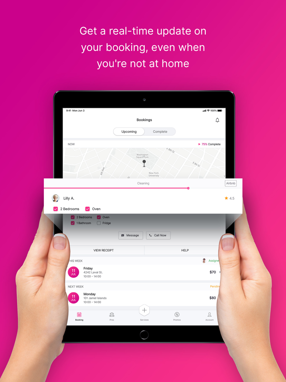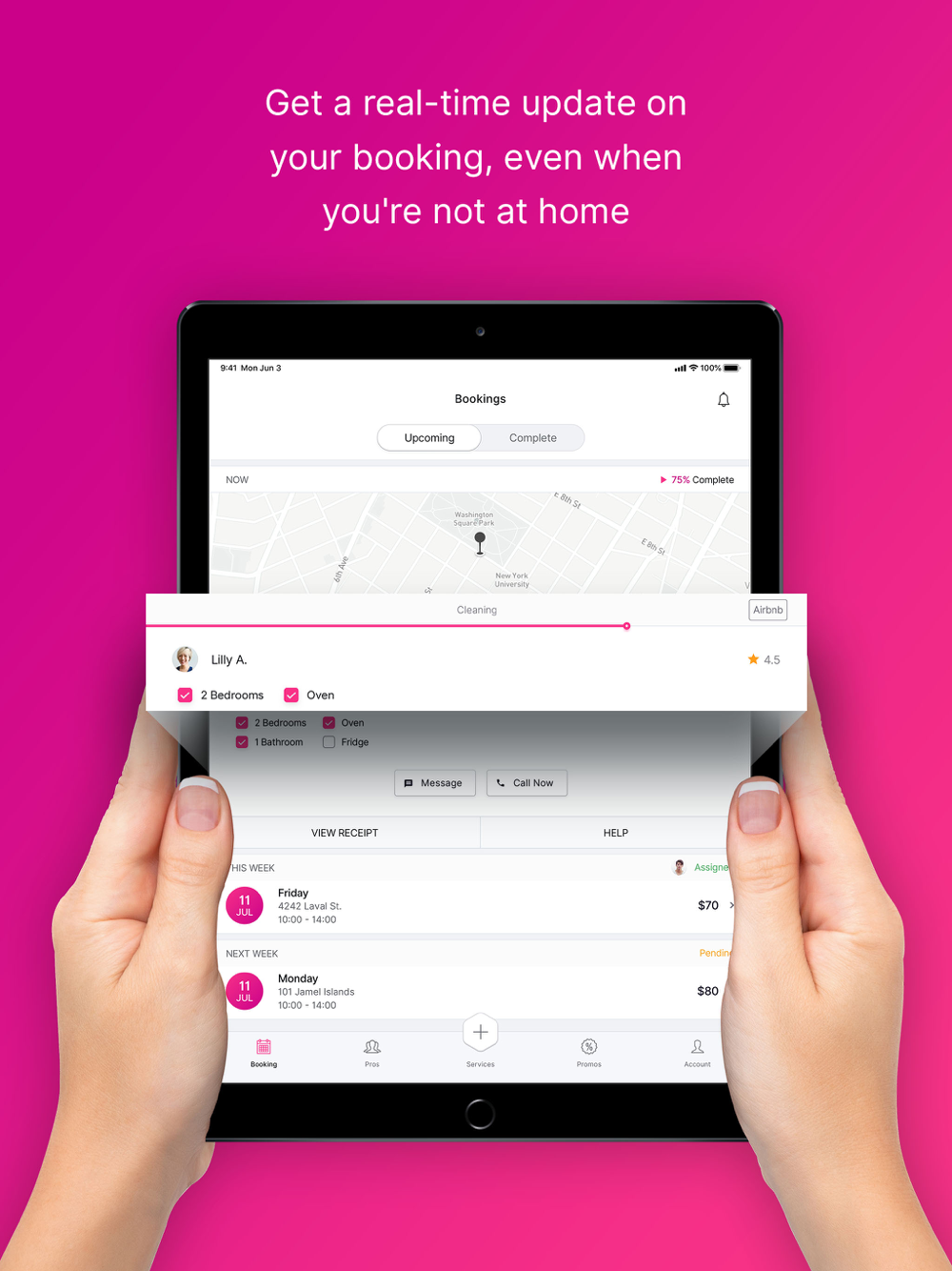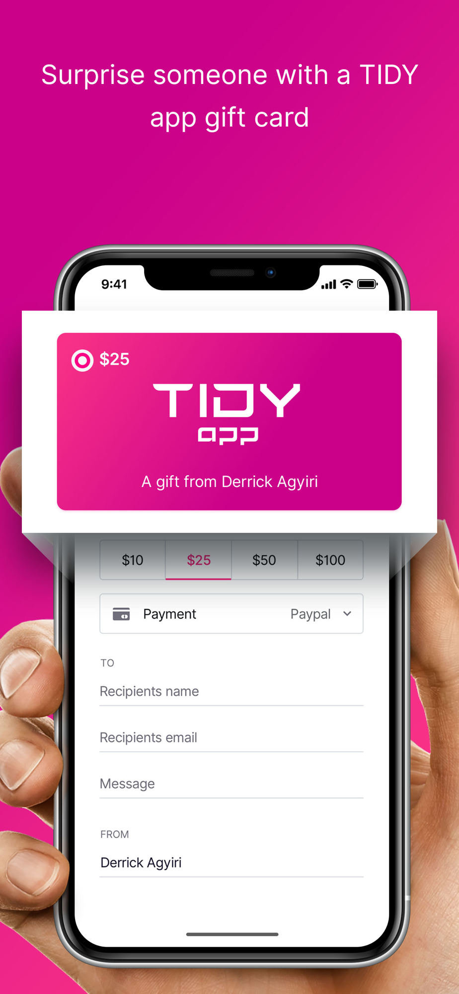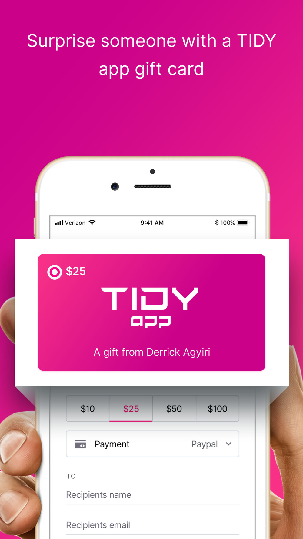 • Top-rated professionals. TIDY app professionals are experienced, friendly, background-checked, and insured.