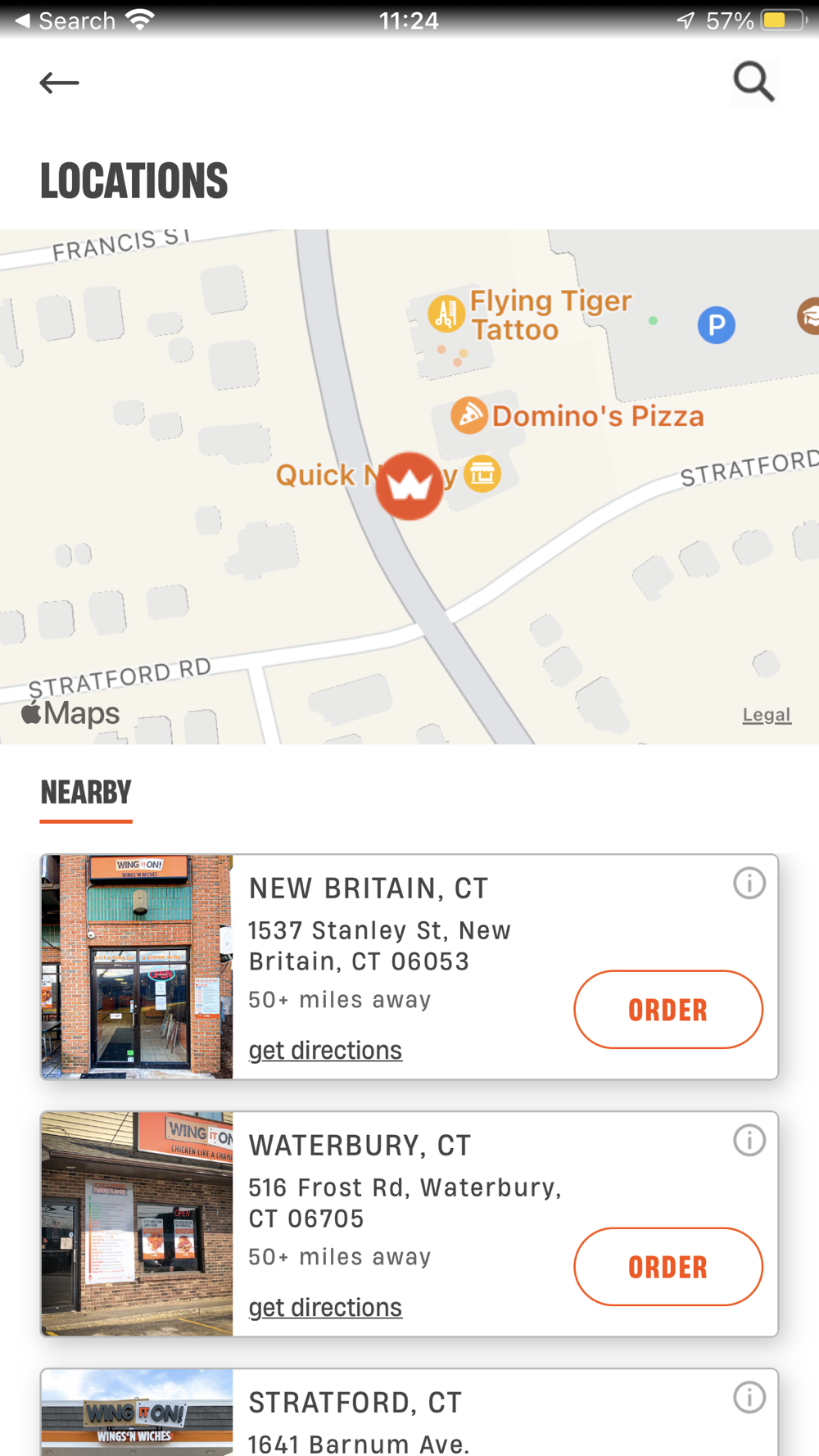 Use the Store Locator to get directions, call ahead, or view your distance from the nearest Wing It On!