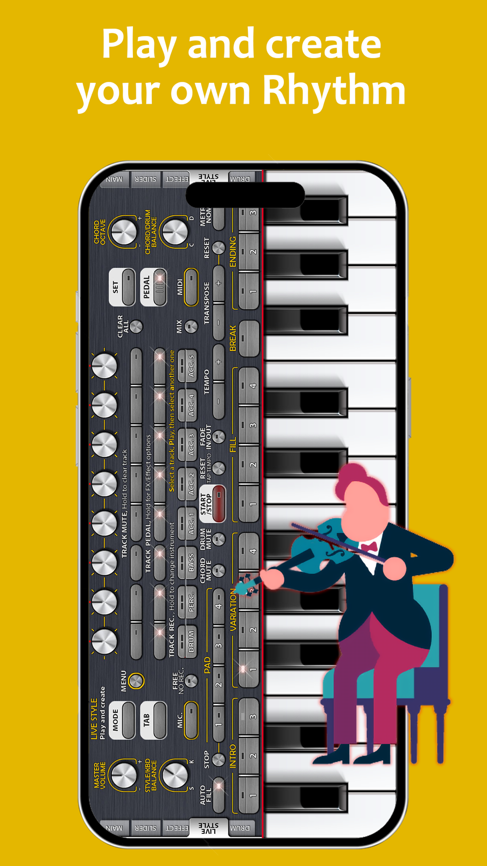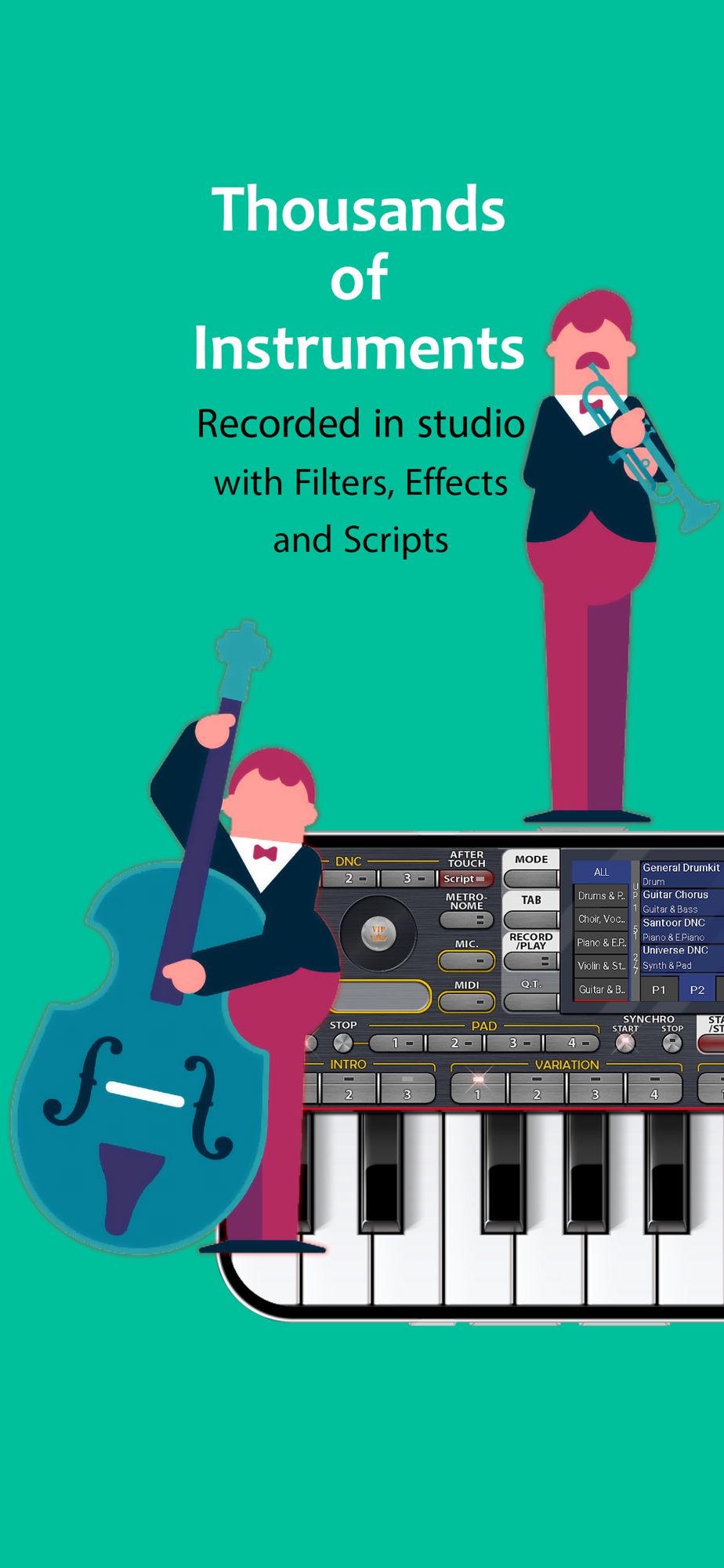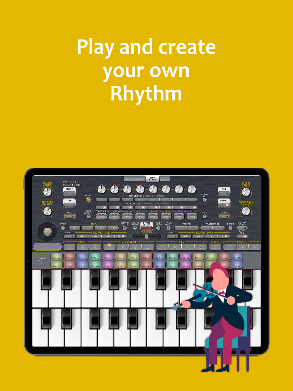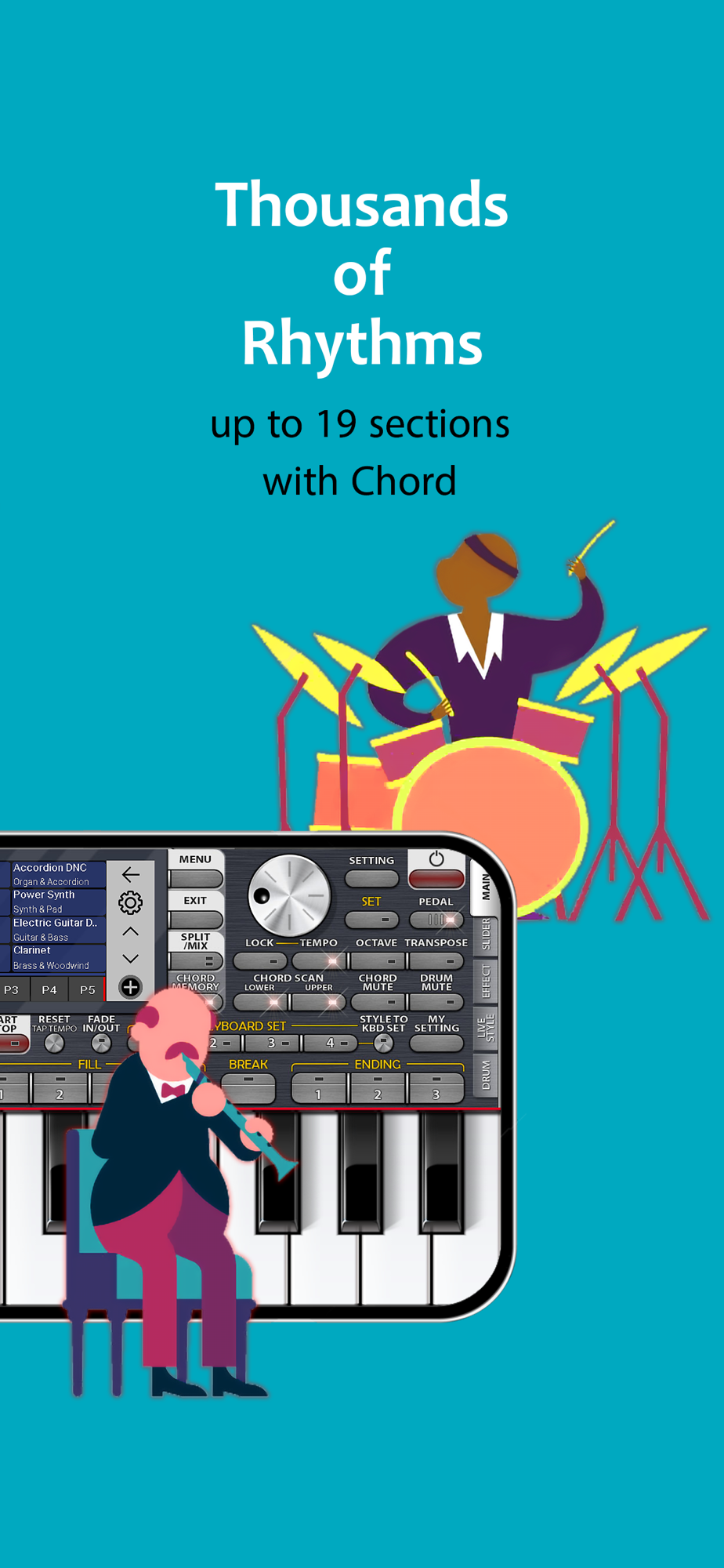 • Thousands of rhythms, Including Intros, Variations, Fills, Break, Endings, and Pads, with Real chords (Press 3 or more keys) such as Pop, Jazz, Rock, Arabic, Turkish, Hindi, …