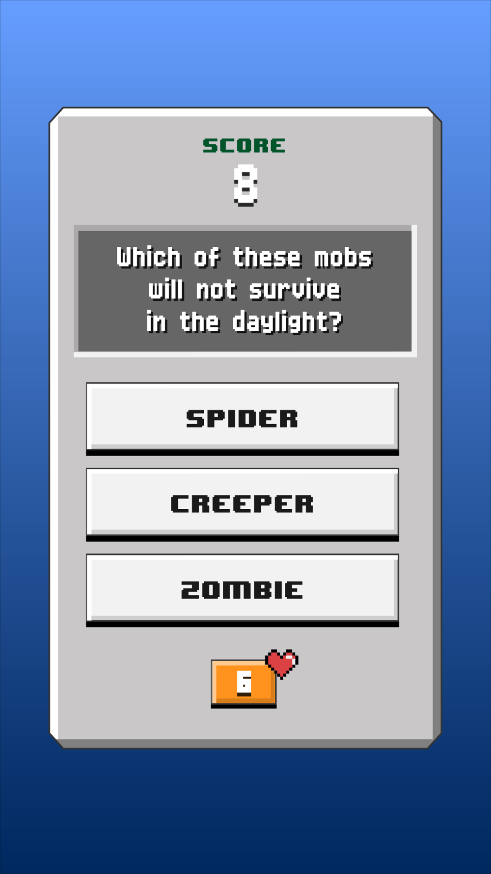 This is an unofficial, fan made Trivia App for Minecraft! It has no affiliation, is not approved by and is not associated with Mojang. This application is intended for educational purpose only.