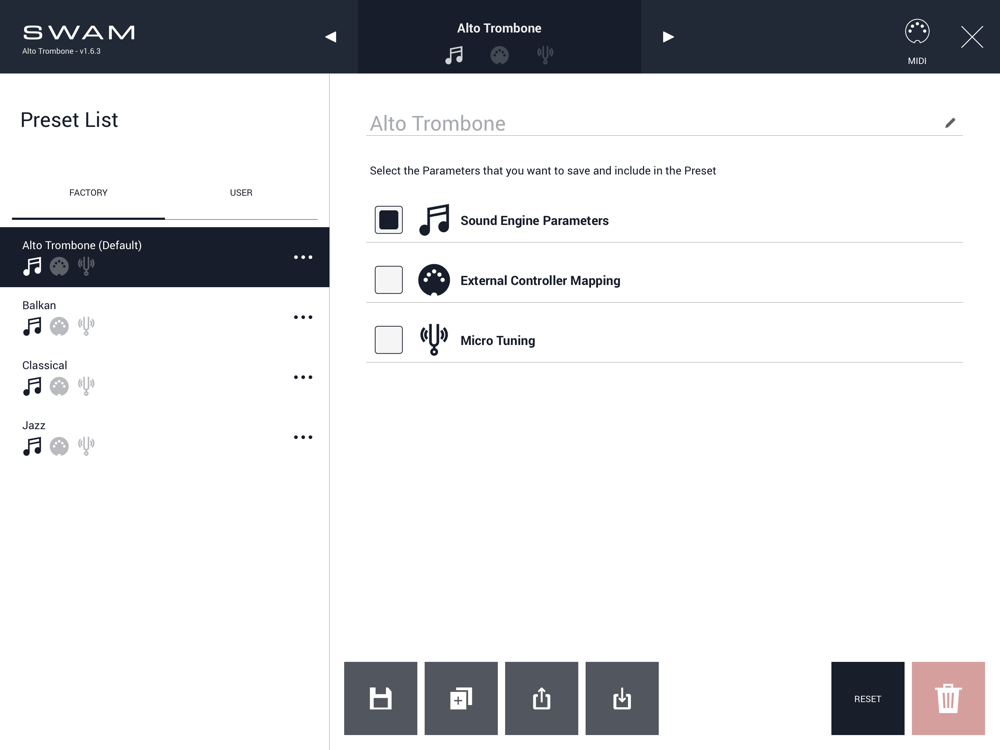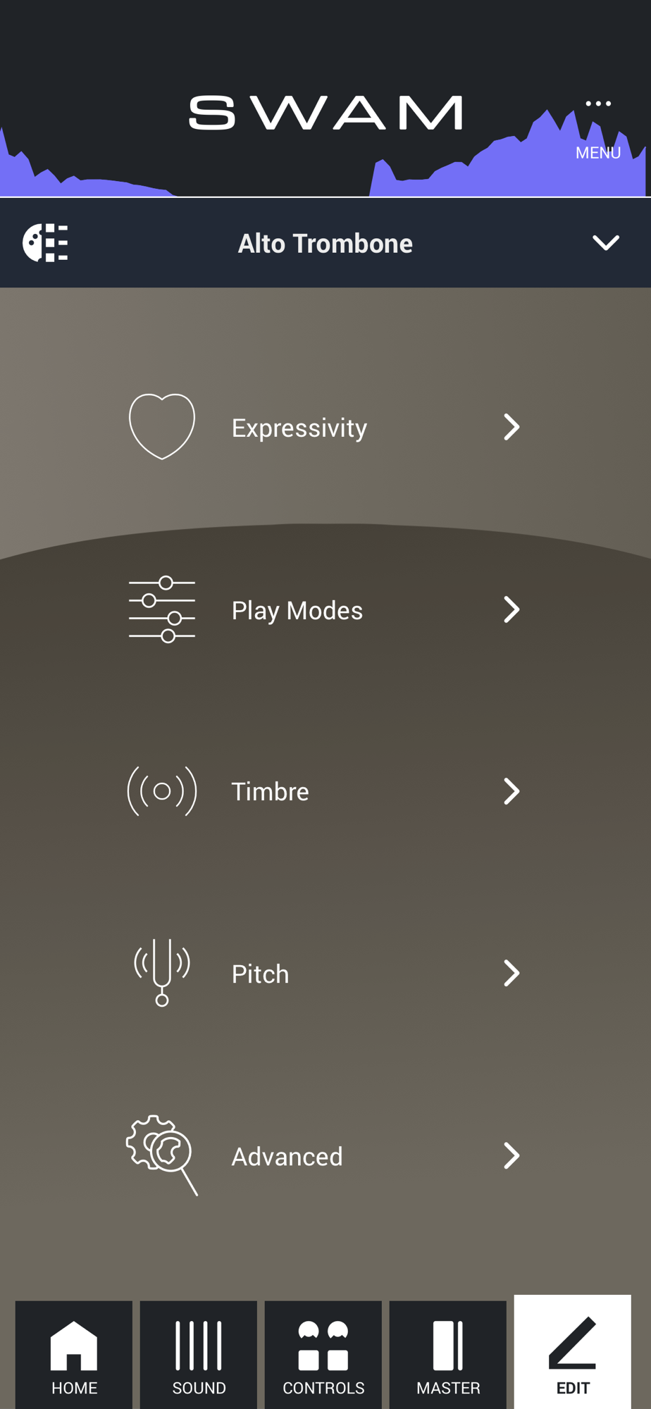 SWAM Alto Trombone for iOS can be used as a standalone instrument for playing in real-time, or as a plug-in for mobile music production. Play with your favorite external controller or directly from your iOS device through our intuitive interface, friendly for blind and visually impaired users.
