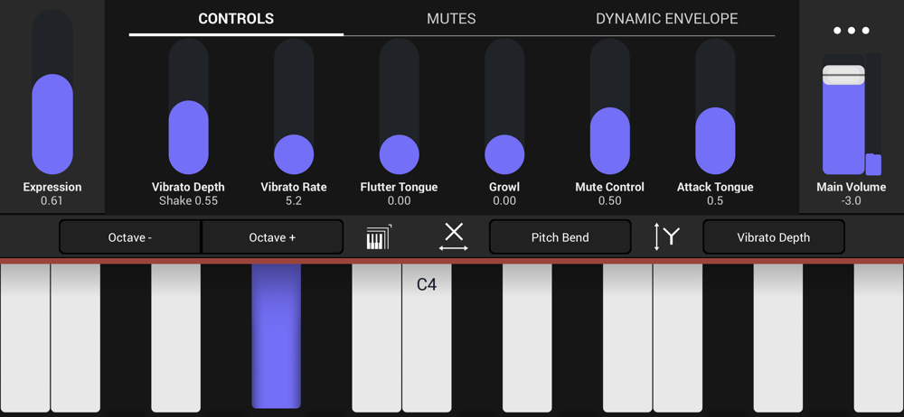 - Adjust every aspect of the instrument’s sound (timbre, vibrato, amount of air, etc.) through an easy-to-use control panel