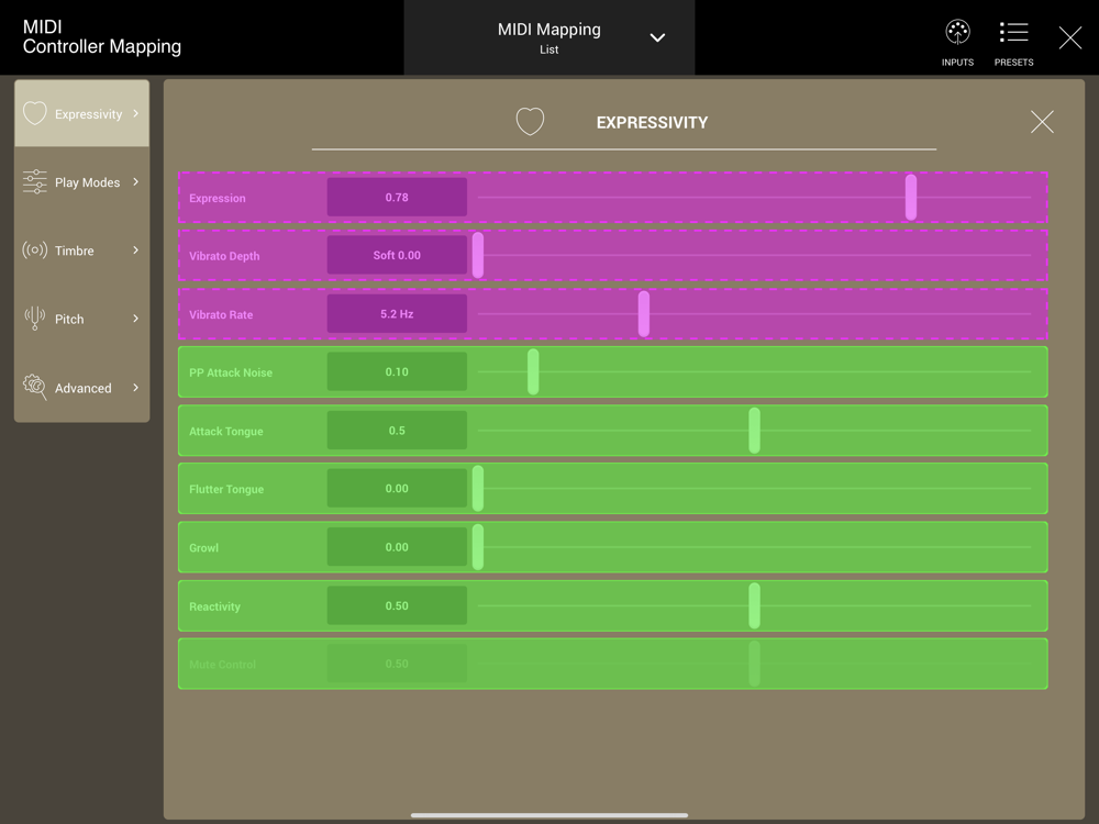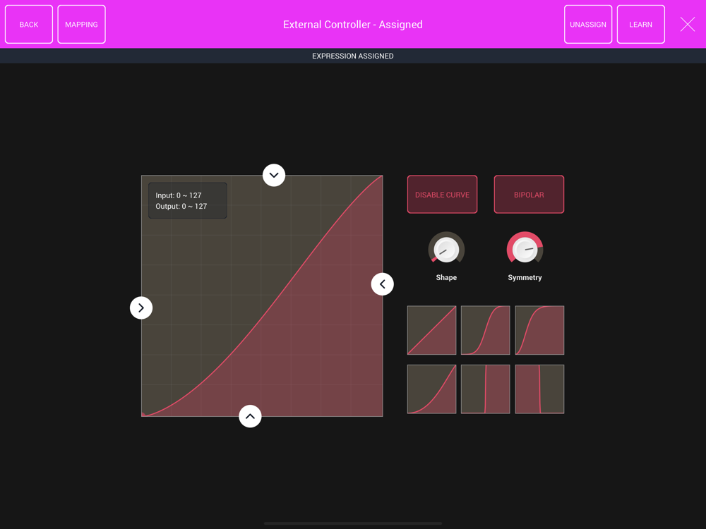 Control the instrument’s expressivity in real-time directly through the touch control interface on your iPad