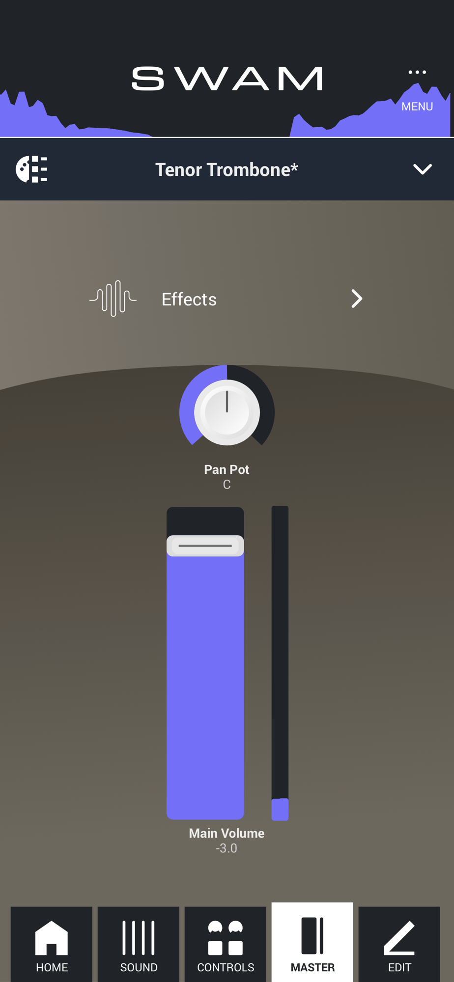 SWAM Tenor Trombone for iOS can be used as a standalone instrument for playing in real-time, or as a plug-in for mobile music production. Play with your favorite external controller or directly from your iOS device through our intuitive interface, friendly for blind and visually impaired users.