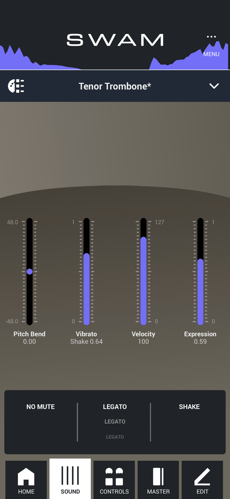 IMPORTANT: If you choose to play using an external controller, please note that a controller with the ability to continuously control the expression (like an expression pedal, breath controller, MPE device, wind controller, …) is REQUIRED. The same way real players need a bow to express themself on their instrument, SWAM Tenor Trombone needs something to control its expressivity. SWAM instruments do not work with just note-on velocity.
