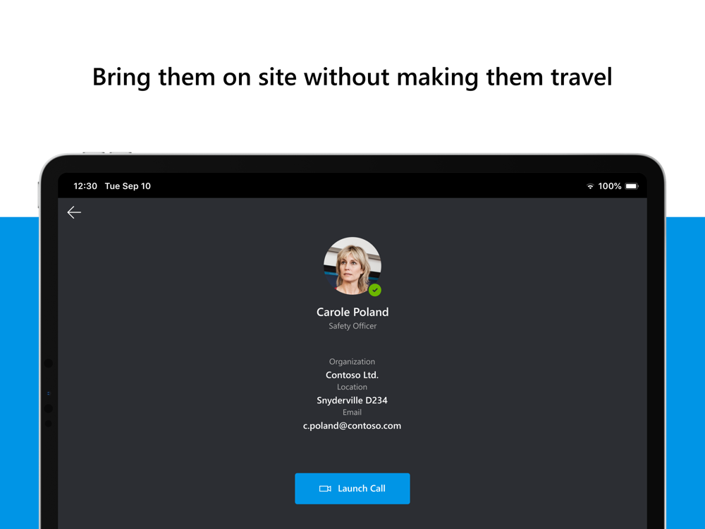 • 能夠從 Dynamics 365 Field Service 行動應用程式發起通話給 Dynamics 365 Remote Assist 行動應用程式的遠端共同作業者