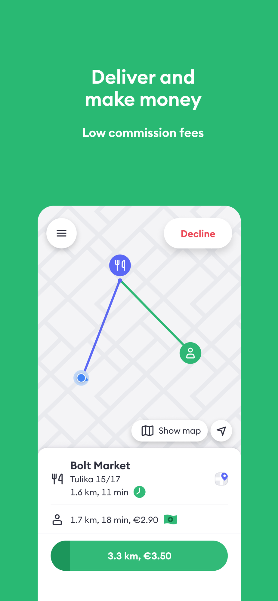 Deliver with Bolt Food. Earn money, be your own boss, and deliver when you want.