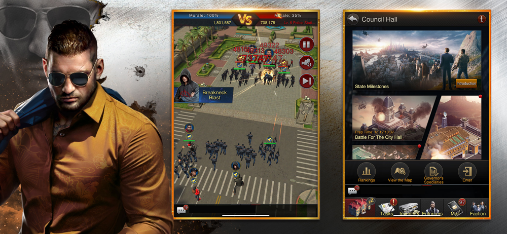 Every player will be able to develop their criminal empire differently. There are different skills, stats, characters and upgradable content within the game, which require your attention to strategy to individualize your army with fully-fledged mechanics.