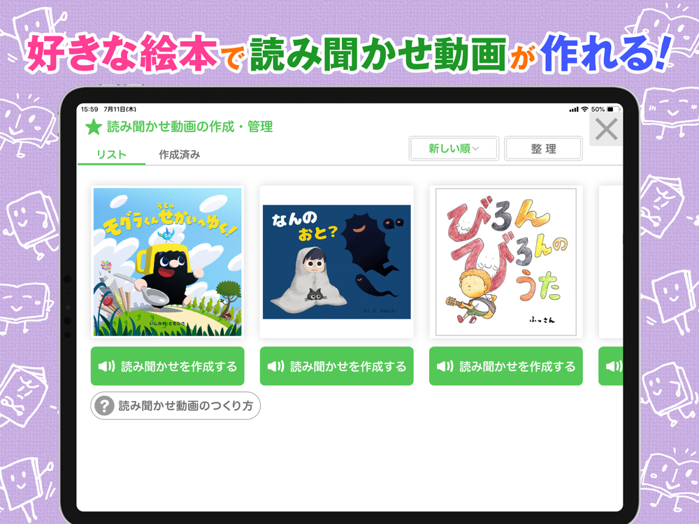 会員登録すれば、自身で好きな絵本の「読み聞かせ動画」を作ることもできます。