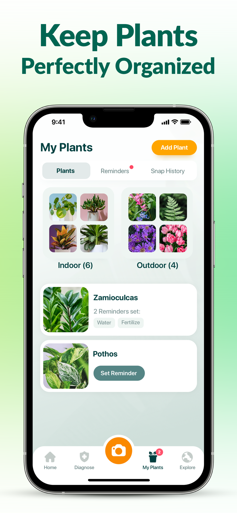• Keeping all care recommendations in your head is quite a challenging task. Set watering, misting, feeding, and rotating schedules right in the app and never forget about your plant’s needs again.