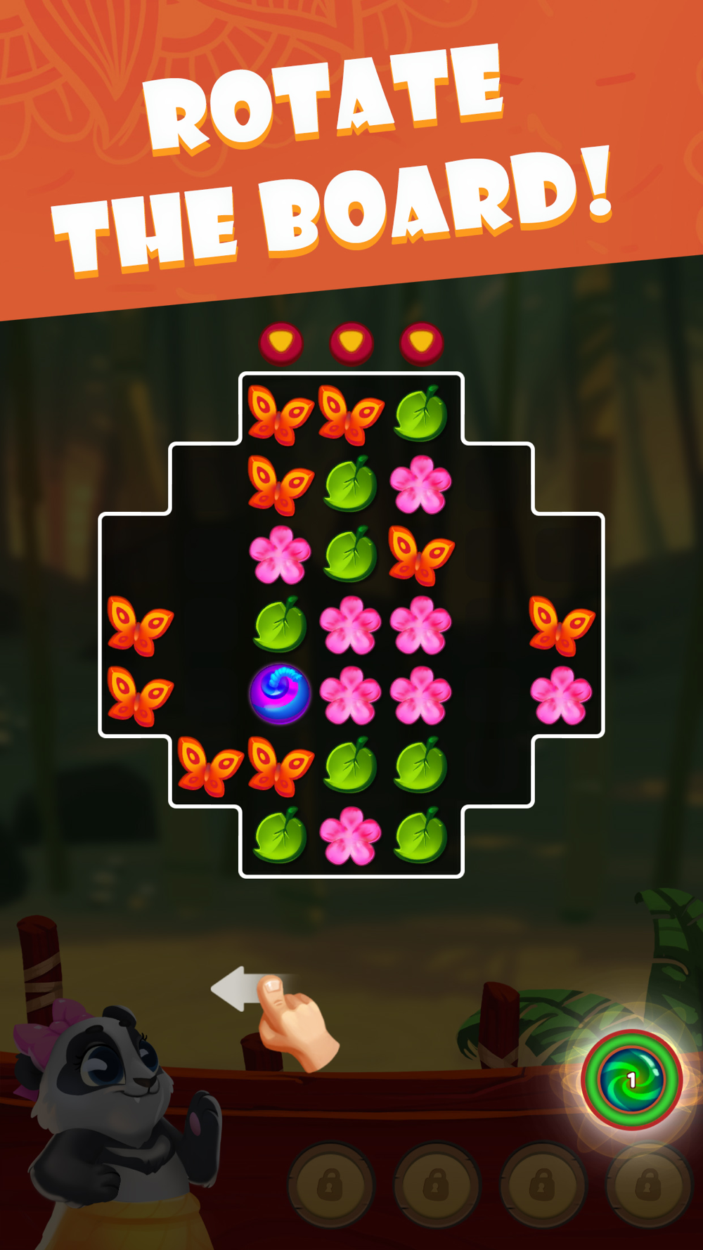 You can swap diagonally and rotate the whole grid to unlock new strategies and give you another perspective on the match-3 gameplay.