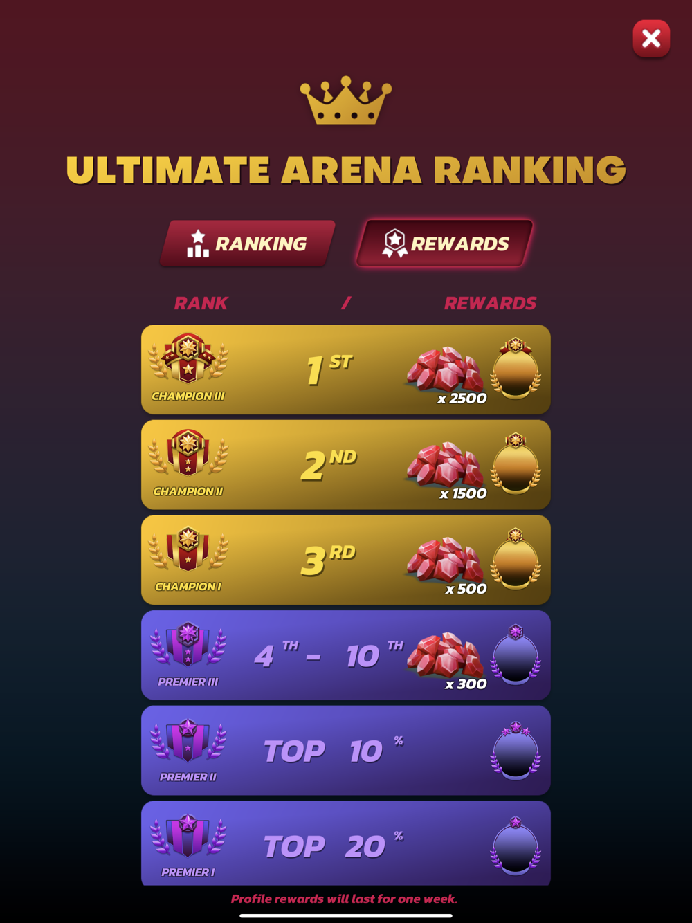 Earn the most honorable trophy by getting the highest Tournament Ranking!