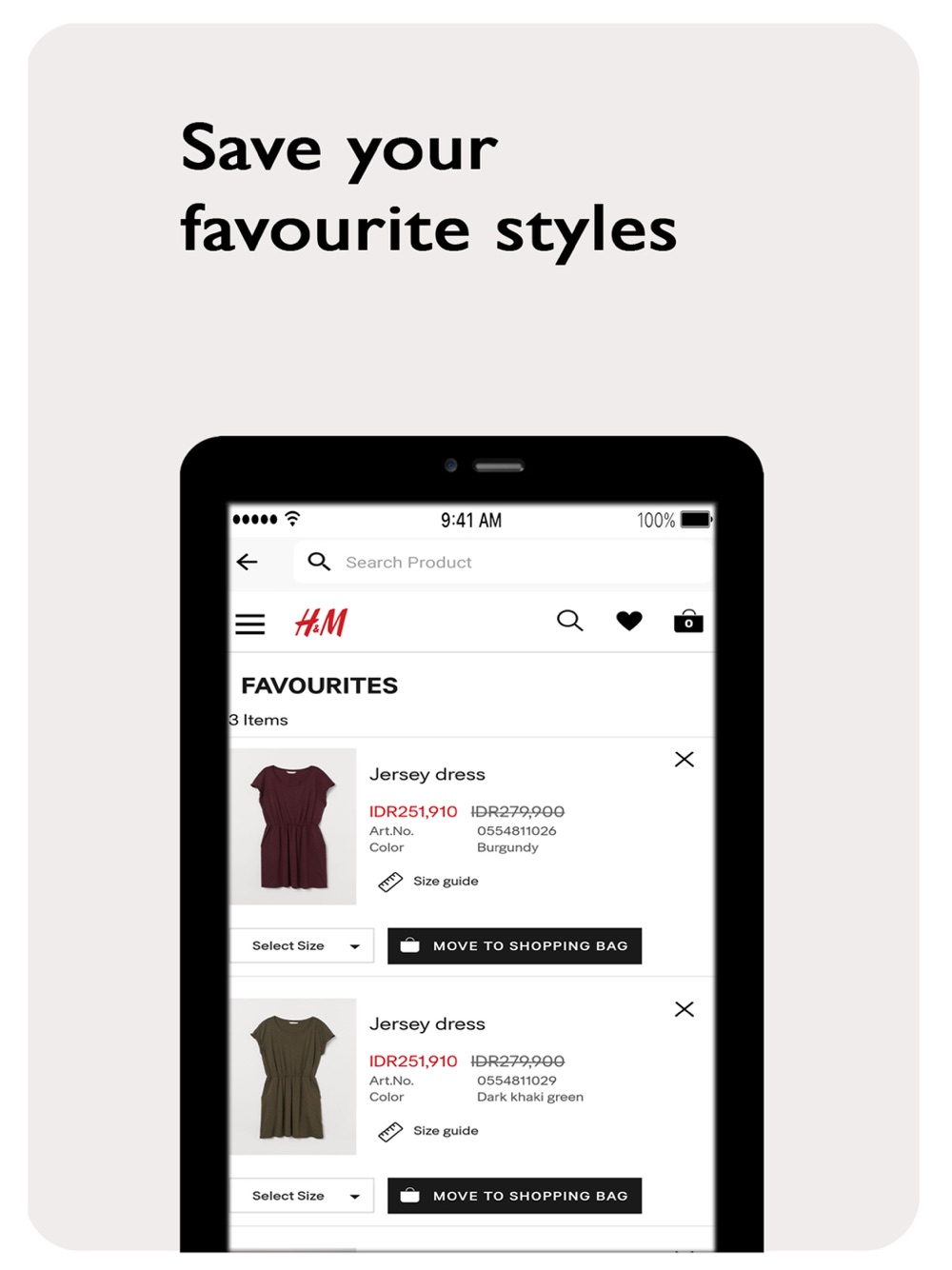 Save the items you love the most in your own list of favourites — just tap the HEART ICON.